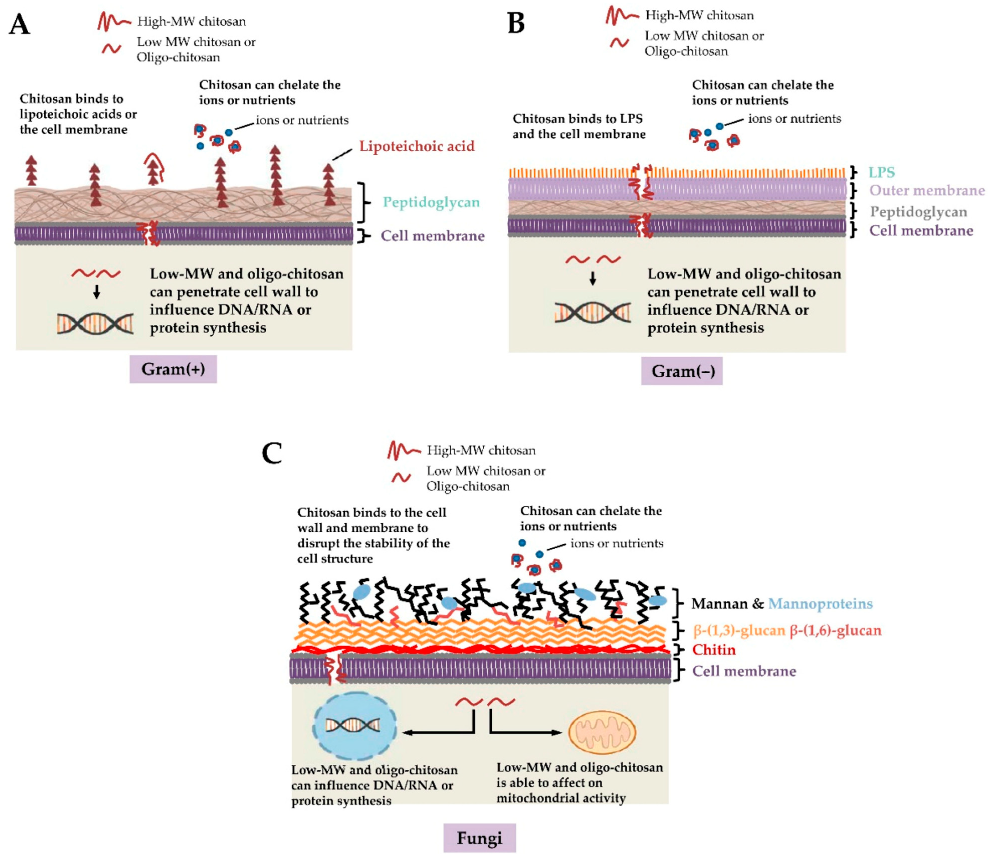 - Ke, C.L.; Deng, F.S.; Chuang, C.Y.; Lin, C.H. Antimicrobial Actions and Applications of Chitosan. Polymers 2021, 13, 904. [Google Scholar] [CrossRef]