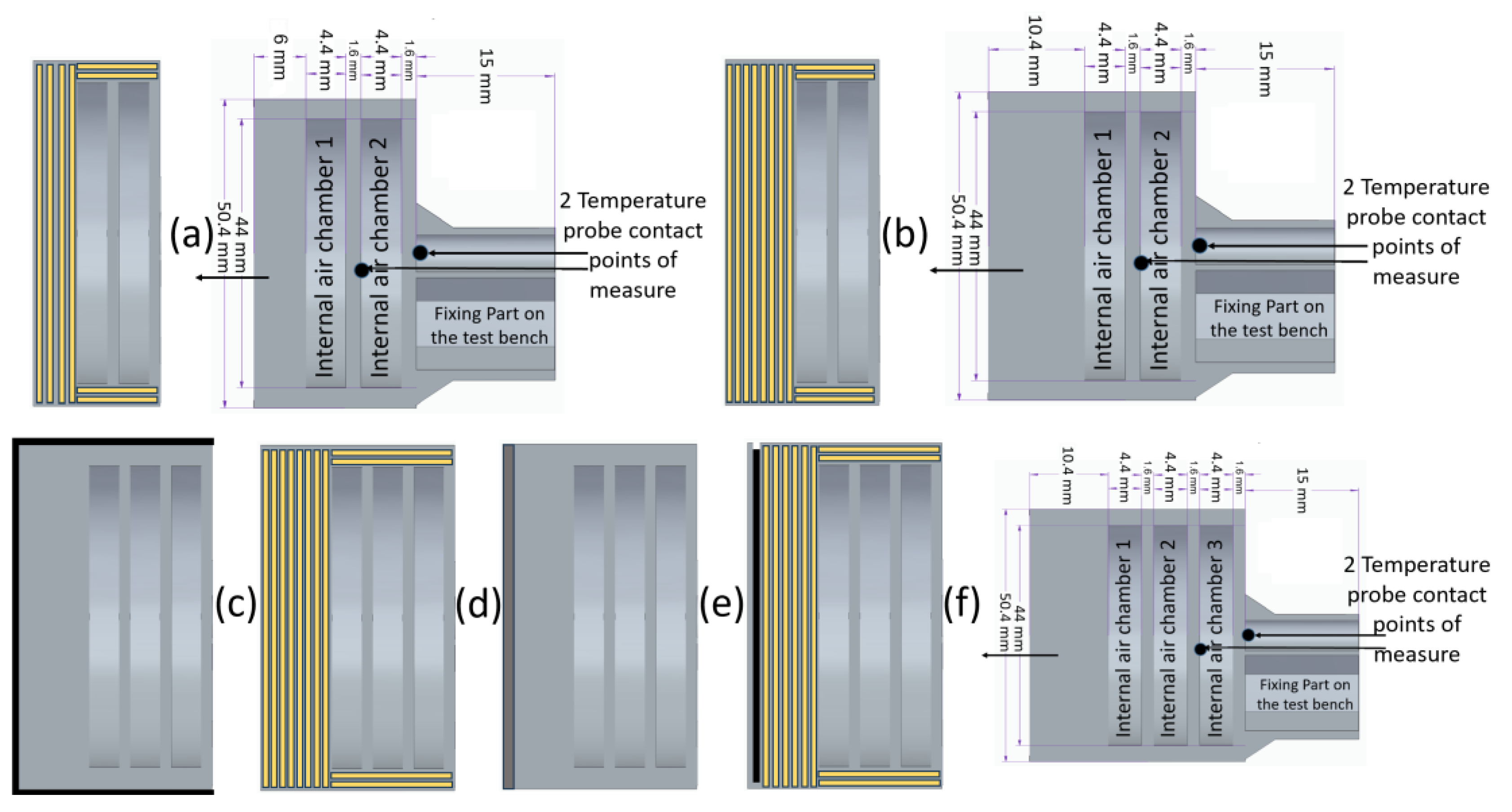 Configuration 2 showed the best performance, with thicker frontal walls and more CCF-F reinforcement preserving structural integrity under thermal load. Configuration 1 failed after 90 s, while hybridized three-air-chamber designs degraded progressively, with partial char protection at 60 s but significant ablation at 90 s. In all probes from