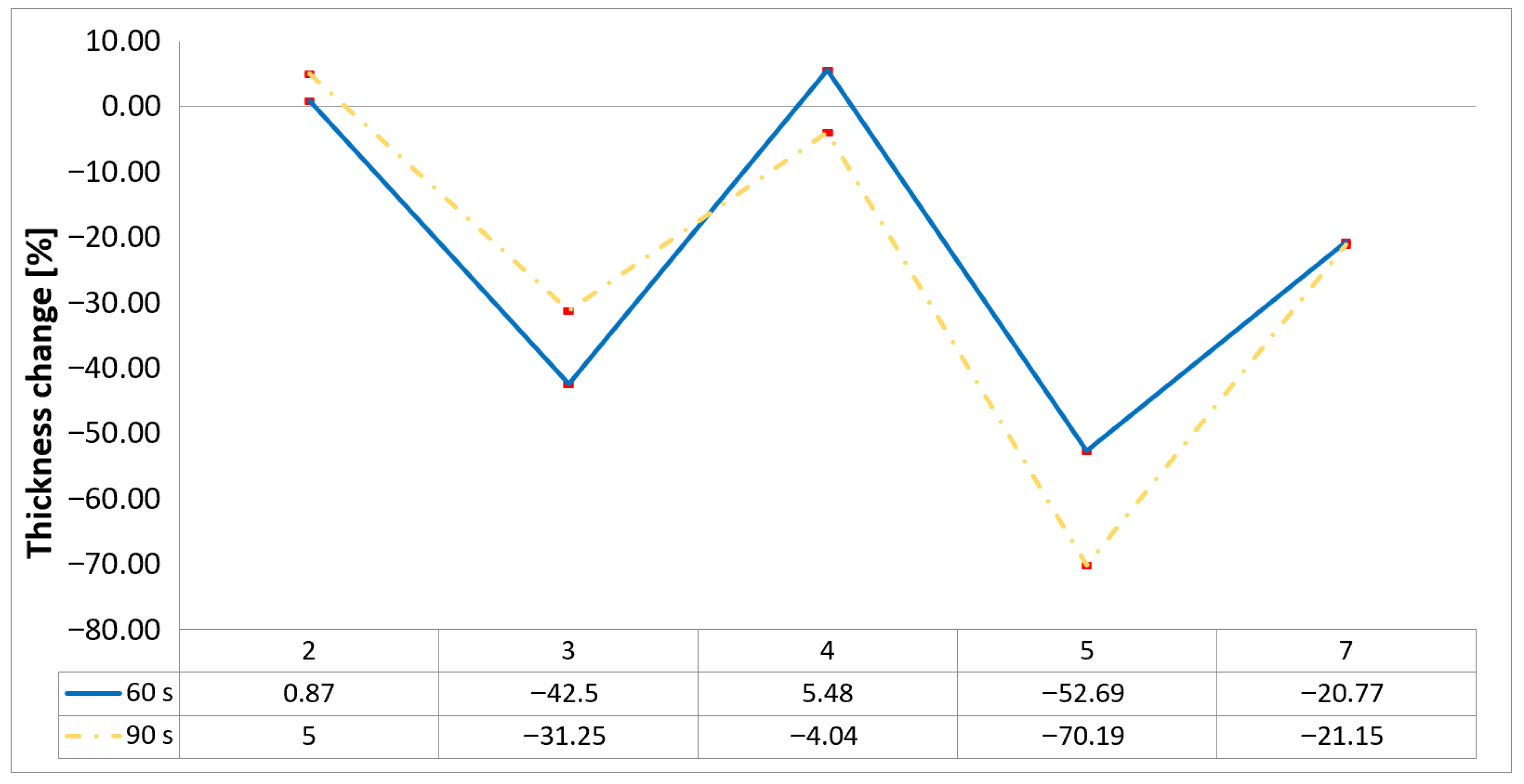 Table 4 illustrates the results of the thickness change rates and provides cross-section views of all tested specimens.