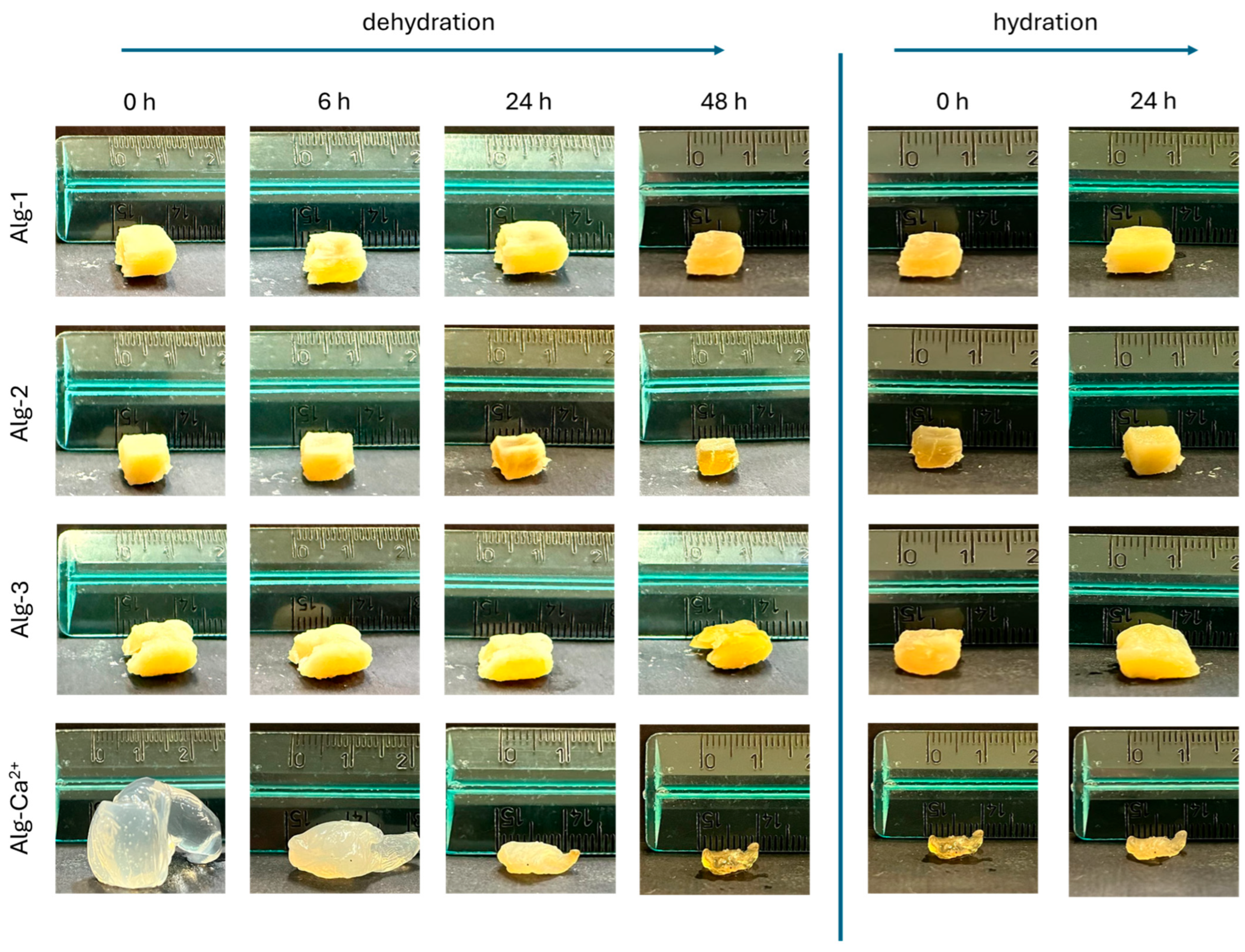 Figure 1). Commercially available as water-soluble sodium alginate, the ratio between G and M blocks influences the gel properties: M-rich regions tend to be more elastic, while G-rich domains provide greater stiffness. The sequence and length of these blocks play a crucial role in determining the mechanical and functional behavior of the material [