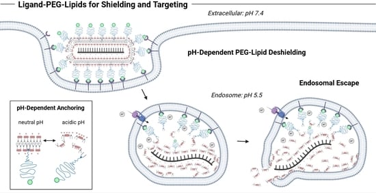 - Mui, B.L.; Tam, Y.K.; Jayaraman, M.; Ansell, S.M.; Du, X.; Tam, Y.Y.; Lin, P.J.; Chen, S.; Narayanannair, J.K.; Rajeev, K.G.; et al. Influence of polyethylene glycol lipid desorption rates on pharmacokinetics and pharmacodynamics of siRNA lipid nanoparticles. Mol. Ther. Nucleic Acids 2013, 2, e139. [Google Scholar] [CrossRef]