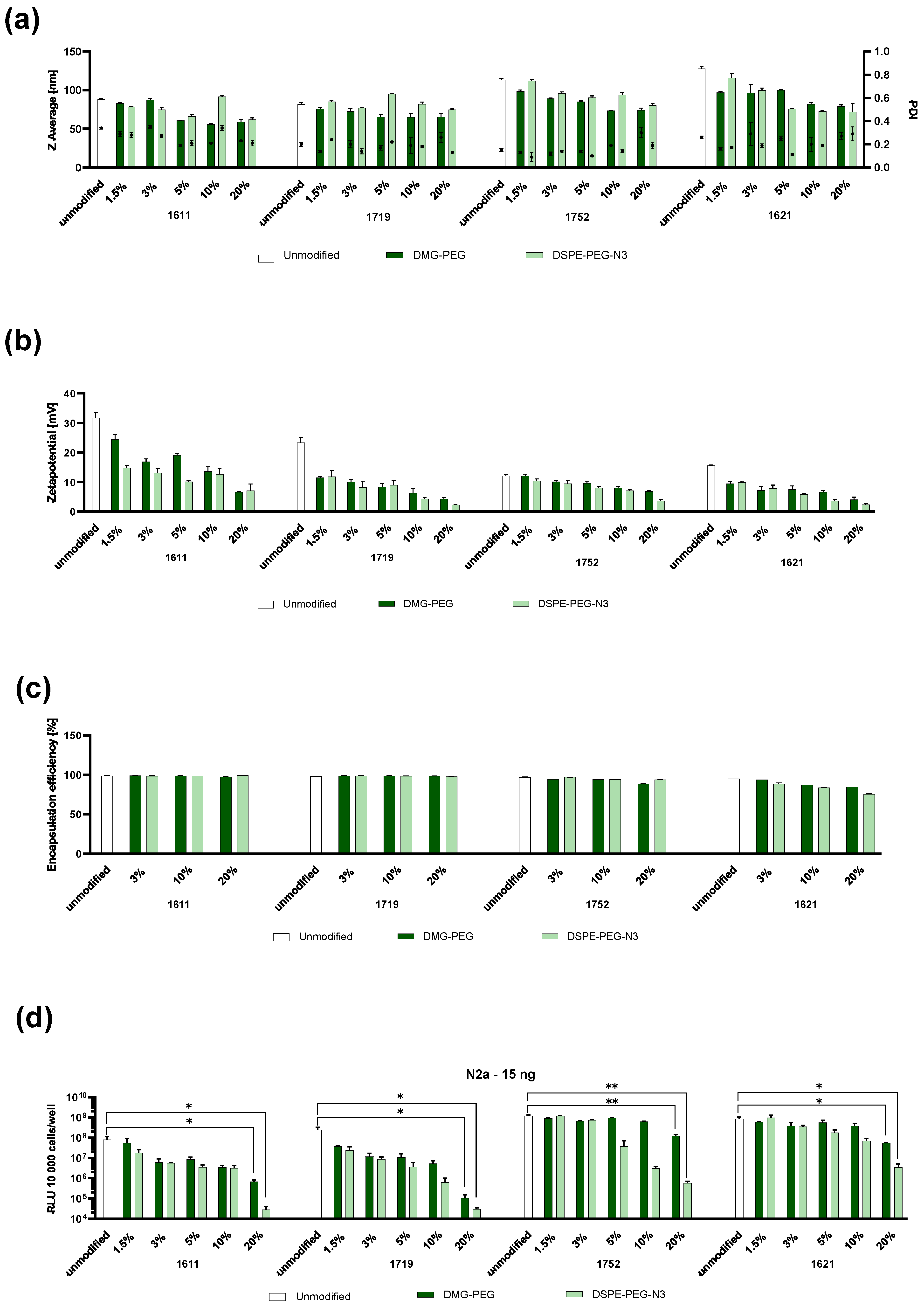 2.2.11. Steric Stabilization of LAF-XP mRNA Polyplexes Against Protein-Induced Aggregation Through PEGylation