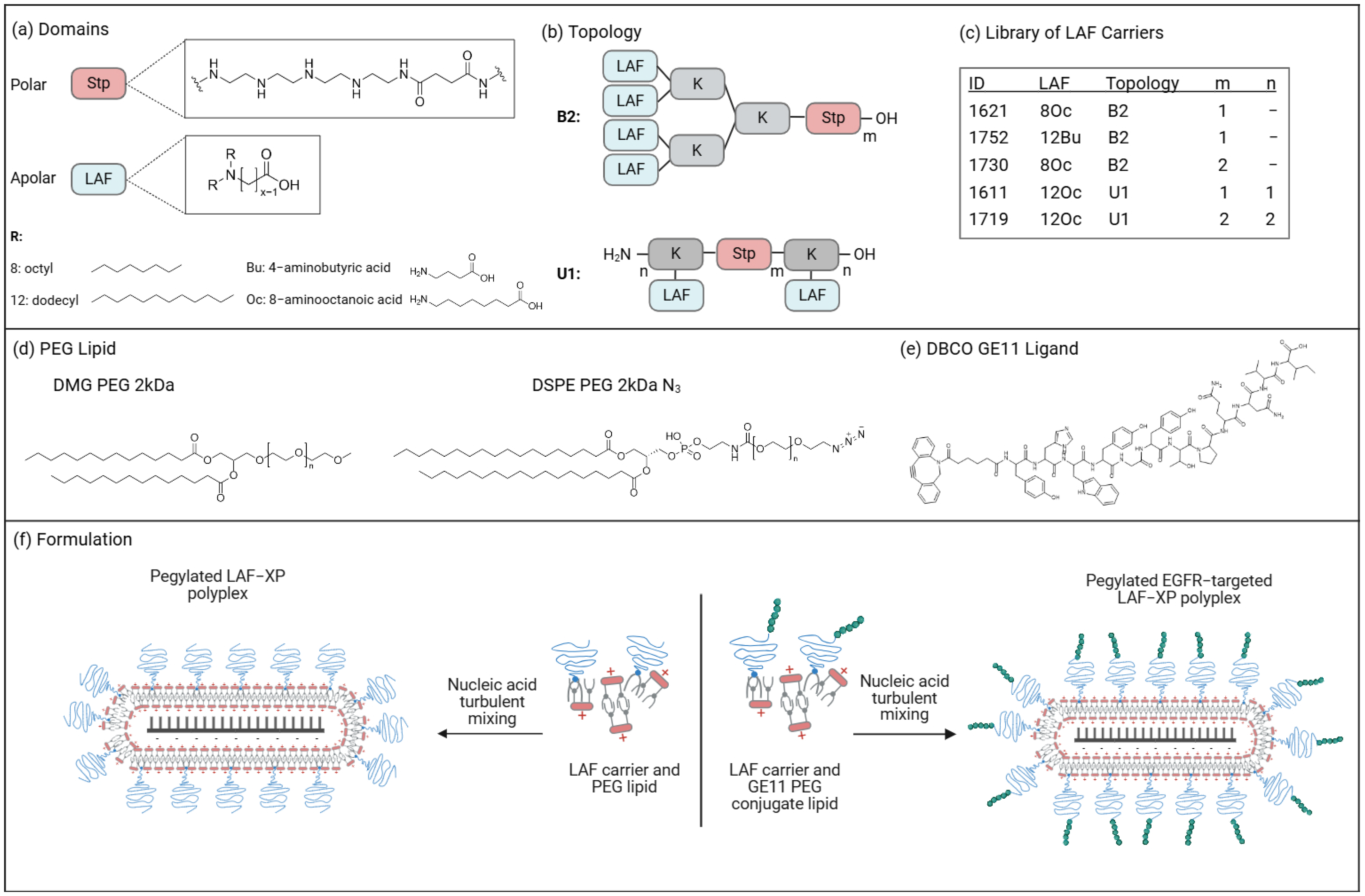 2.2.3. Unmodified and PEGylated LAF-XP Polyplex Formation