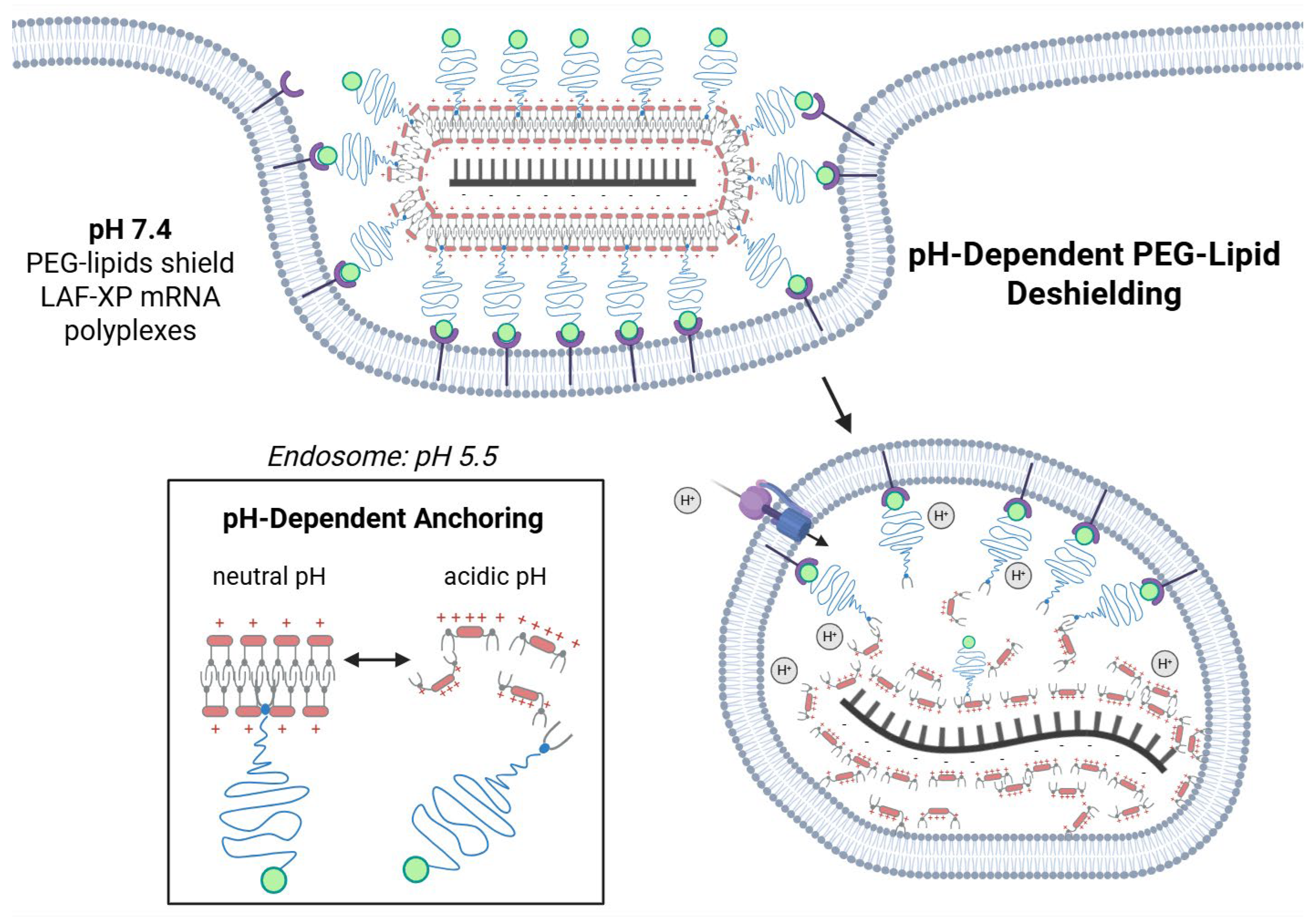 2.2.10. pH-Triggered Deshielding and Destabilization of LAF-XP mRNA Polyplexes