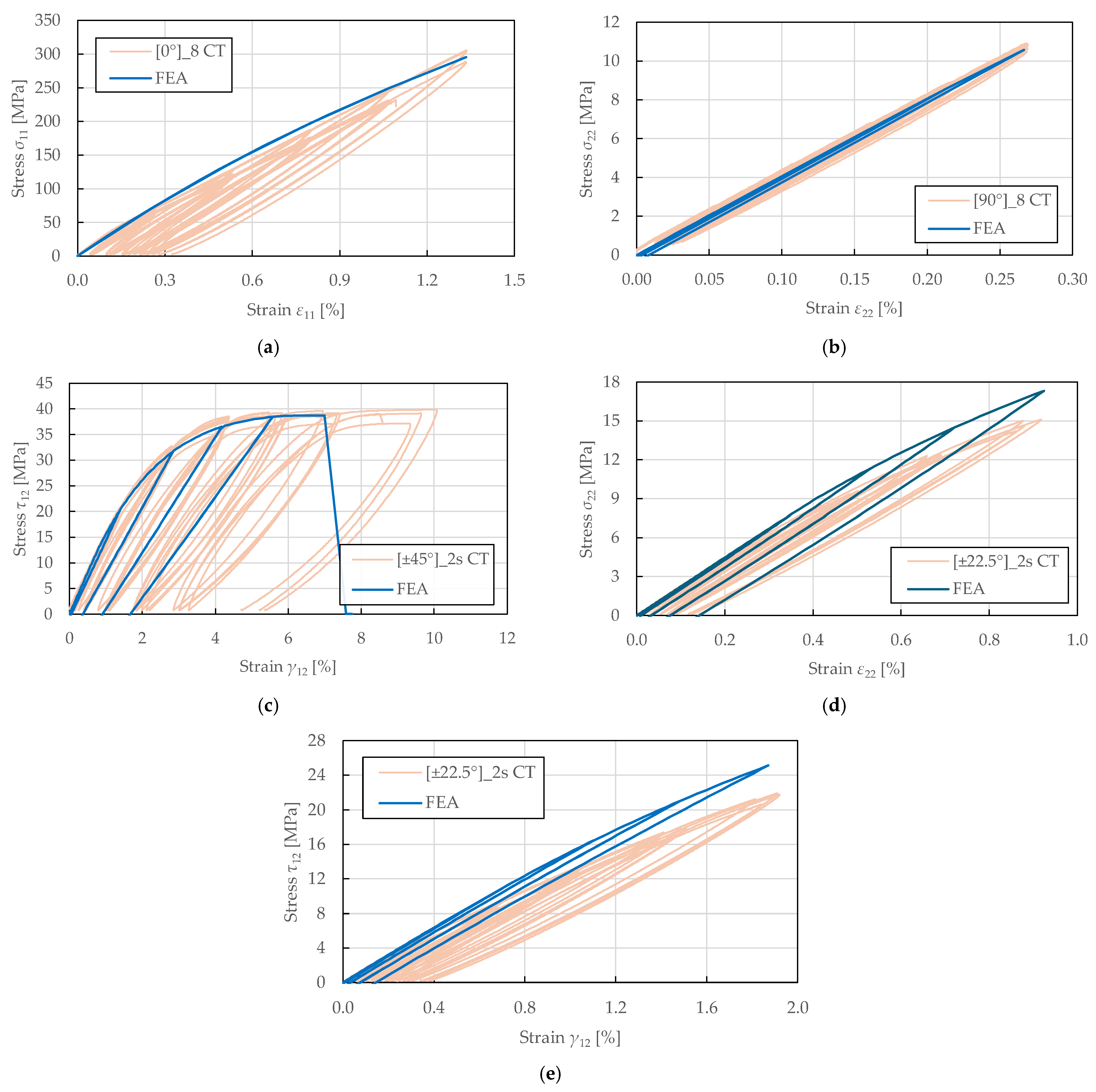 . Then, LR (LSM) was used to fit the damage law in Equation (8) to the experimental data. The identified shear-transverse damage parameters for the CDM model are summarised in