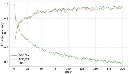 Furthermore, to assess the model’s performance, the loss and accuracy curves during the training process are plotted, as shown in Figure 6.