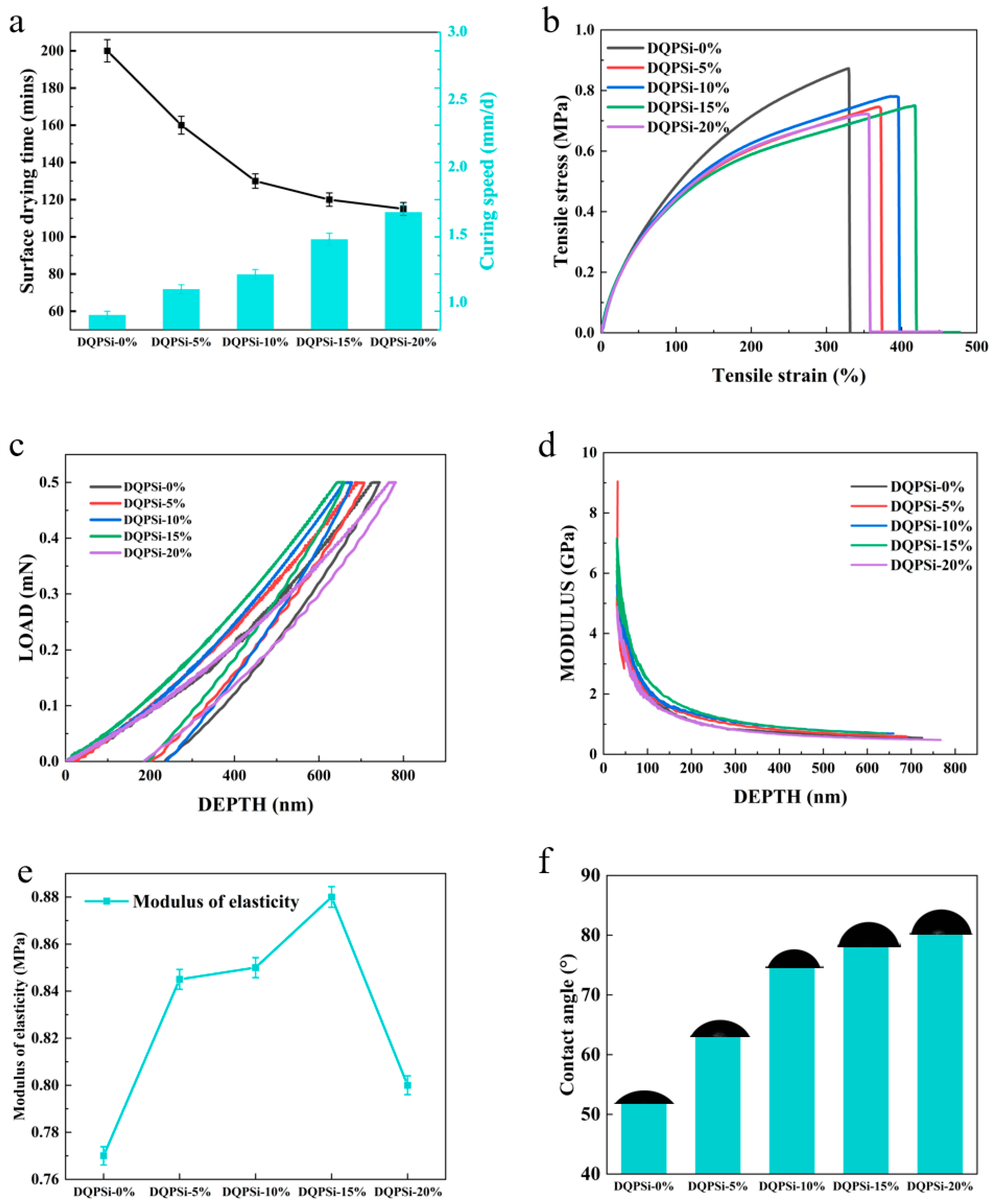 3.3. Effect of DQPSi on Mechanical Properties of Sealant