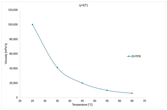 Viscosity change chart as a function of temperature for EHTPB.
