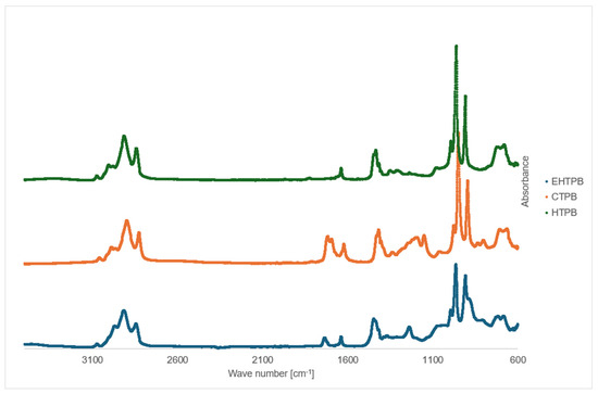 FTIR spectrum of HTPB, CTPB and EHTPB.