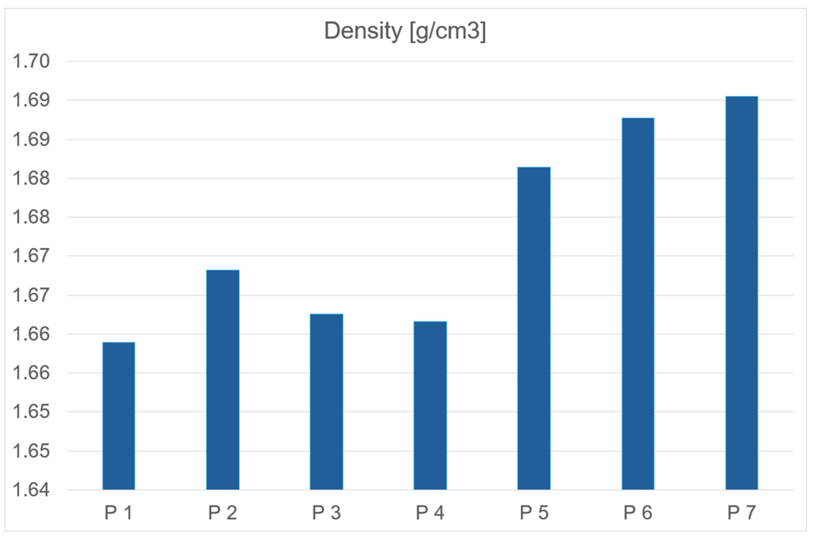 The density of solid rocket propellants is a critical parameter due to its impact on combustion chamber design and burning rate performance. A high charge density is desirable, as it allows for the use of a smaller combustion chamber, directly contributing to reduced engine production costs. Low density may indicate the presence of voids in the cured material. Such structural defects are highly undesirable, as they not only reduce density but also alter the mechanical and ballistic properties of the propellant grain.