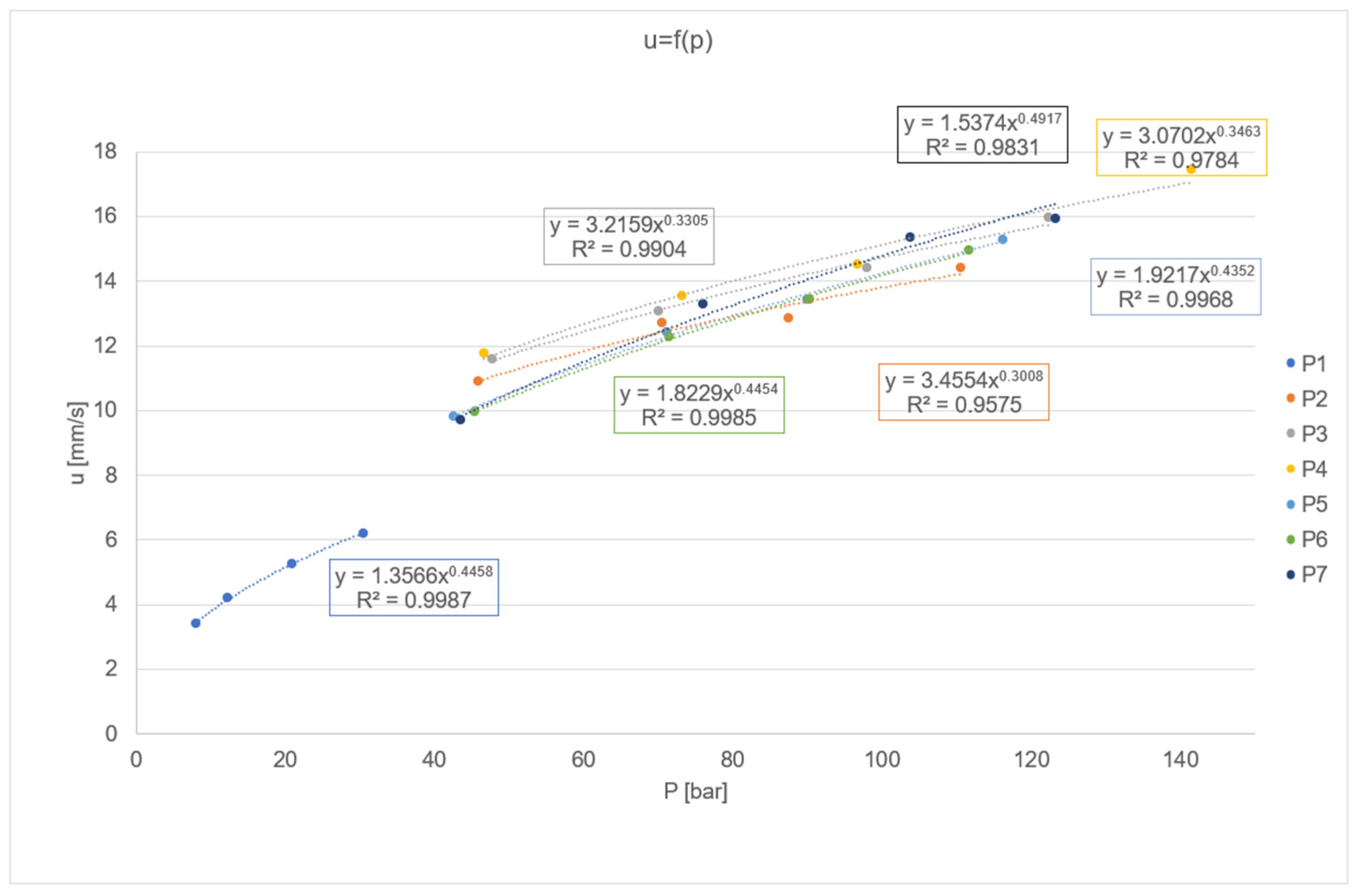 Figure 8. Dependency graph of burning rate on maximum pressure.
