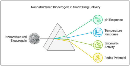 Illustration of nanostructured bioaerogel in different responsiveness for smart drug delivery.