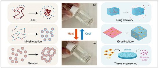 - Zhang, K.; Xue, K.; Loh, X.J. Thermo-responsive hydrogels: From recent progress to biomedical applications. Gels 2021, 7, 77. [Google Scholar] [CrossRef]