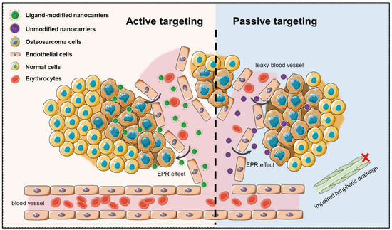 - Shi, P.; Cheng, Z.; Zhao, K.; Chen, Y.; Zhang, A.; Gan, W.; Zhang, Y. Active targeting schemes for nano-drug delivery systems in osteosarcoma therapeutics. J. Nanobiotechnol. 2023, 21, 103. [Google Scholar] [CrossRef]