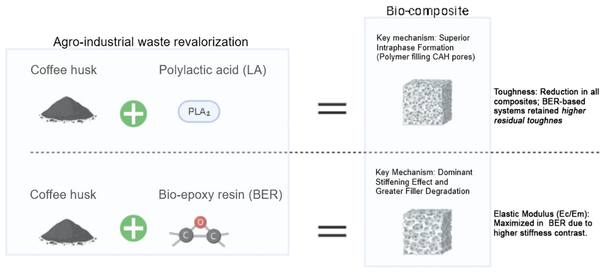 Molina-Sánchez I, Moreno-Miranda C, Peñafiel R, Paredes-Escobar M, Pazmiño-Miranda P, Aldás M, Altamirano-Freire E, Flores N. Valorization of Coffee Husk in Ternary Bio-Composites: Synergistic Reinforcement of Bio-Epoxy/Polylactic Acid for Enhanced Mechanical and Physical Properties. Polymers. 2025; 17(22):3013. https://doi.org/10.3390/polym17223013
