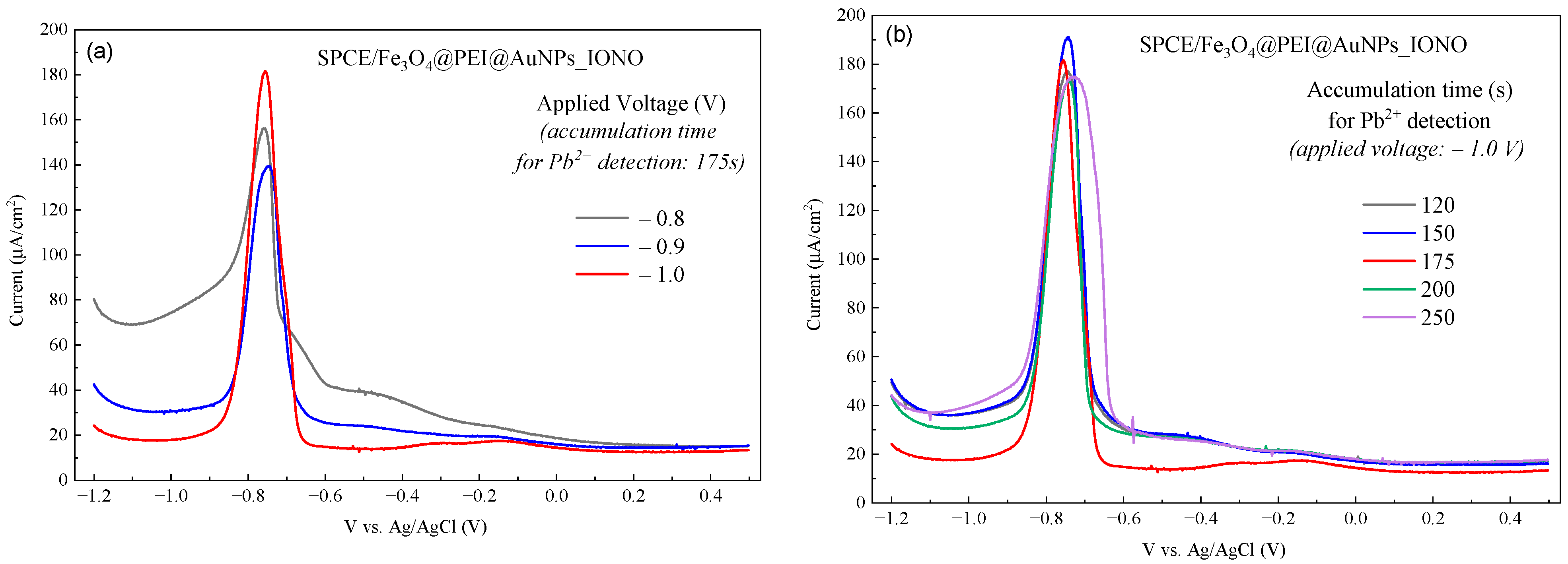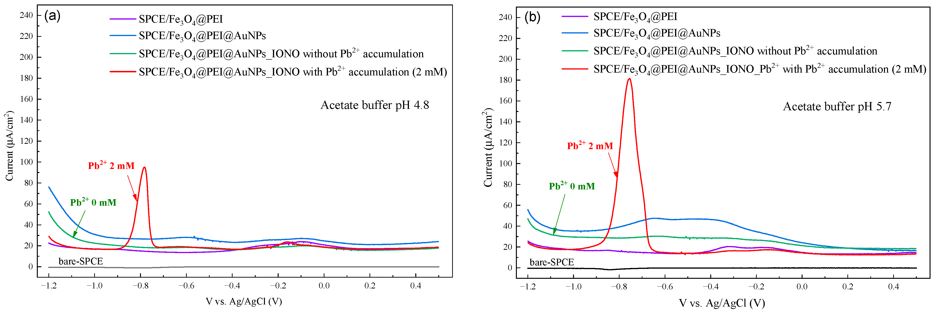 3.2. Optimization of Electrochemical Conditions for Pb2+ Detection