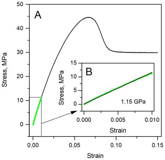 3.1. Specimens’ Young’s Modulus Determination by the Standard Method