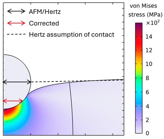 | PMMA thin films | AFM spherical tip (500 nm) | Contact radius and modulus | Hertz + FEA validation | Finite element correction reduced Hertz overestimation of contact radius by ~25%. | [29] |