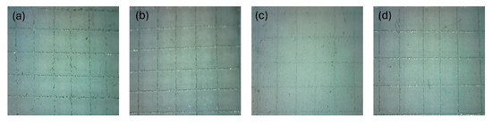 Evaluation of adhesion by cross-cut test for SFO-G (a), LSO-G (b), SFO-P (c), LSO-P (d).