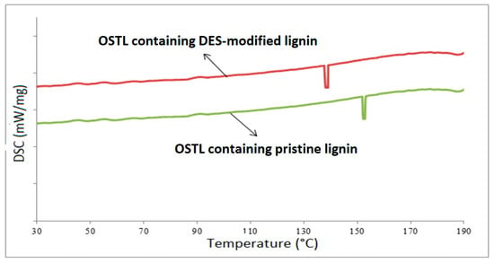 - DSC analysis indicated that the curing temperature of the OSTL resin containing DES-modified lignin was lower than that with unmodified lignin.