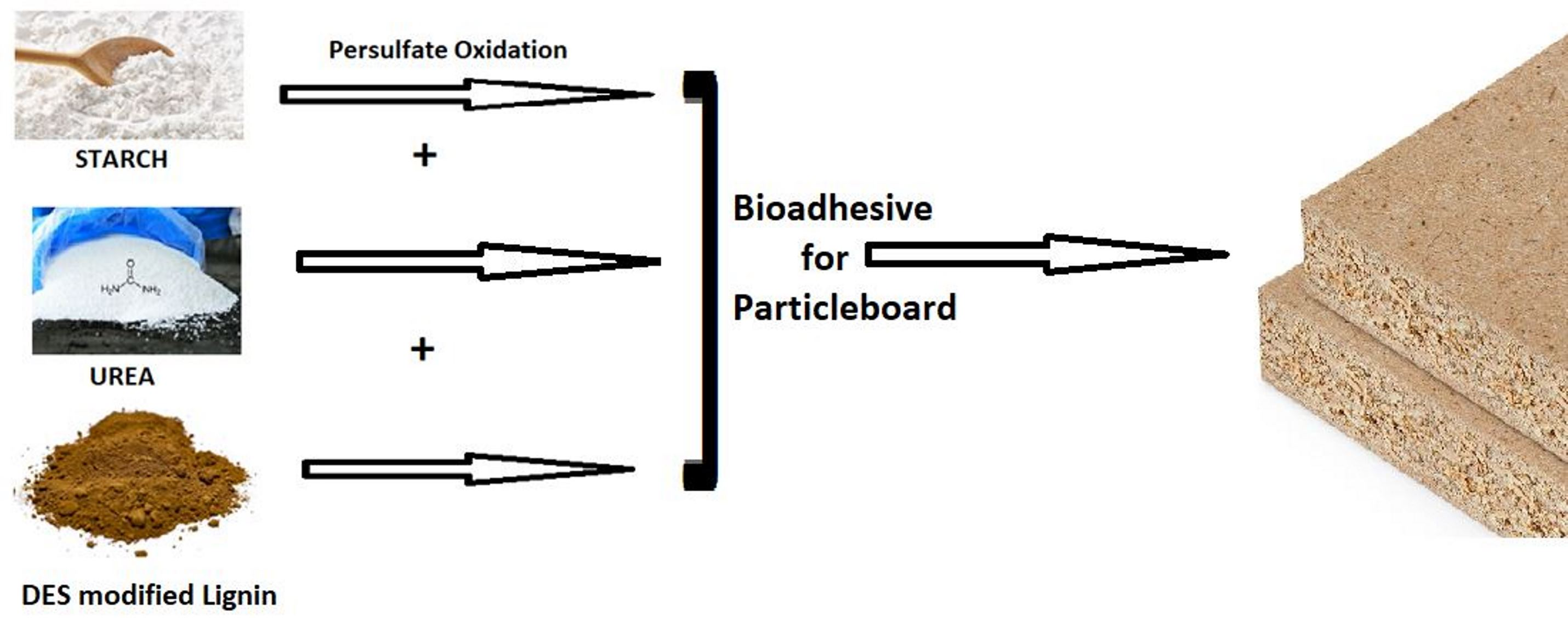 - The poor dimensional stability and weak mechanical strength of the particleboard panels bonded with the lignin-oxidized starch resin could be improved by modifying lignin with DES in the formulation.