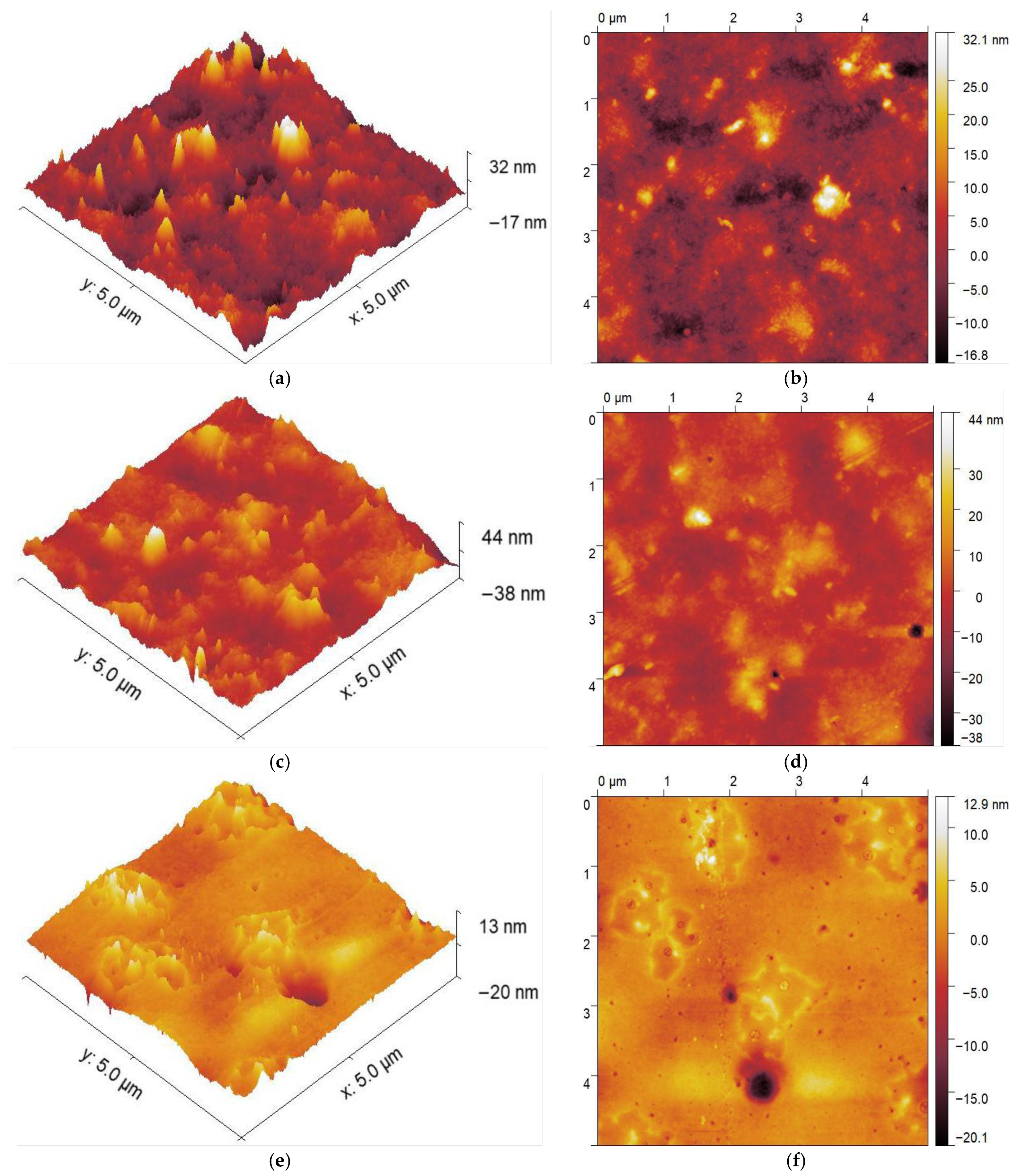 | Sample | RMS Roughness (Sq) (nm) | Mean Roughness (Sa) (nm) | ||
