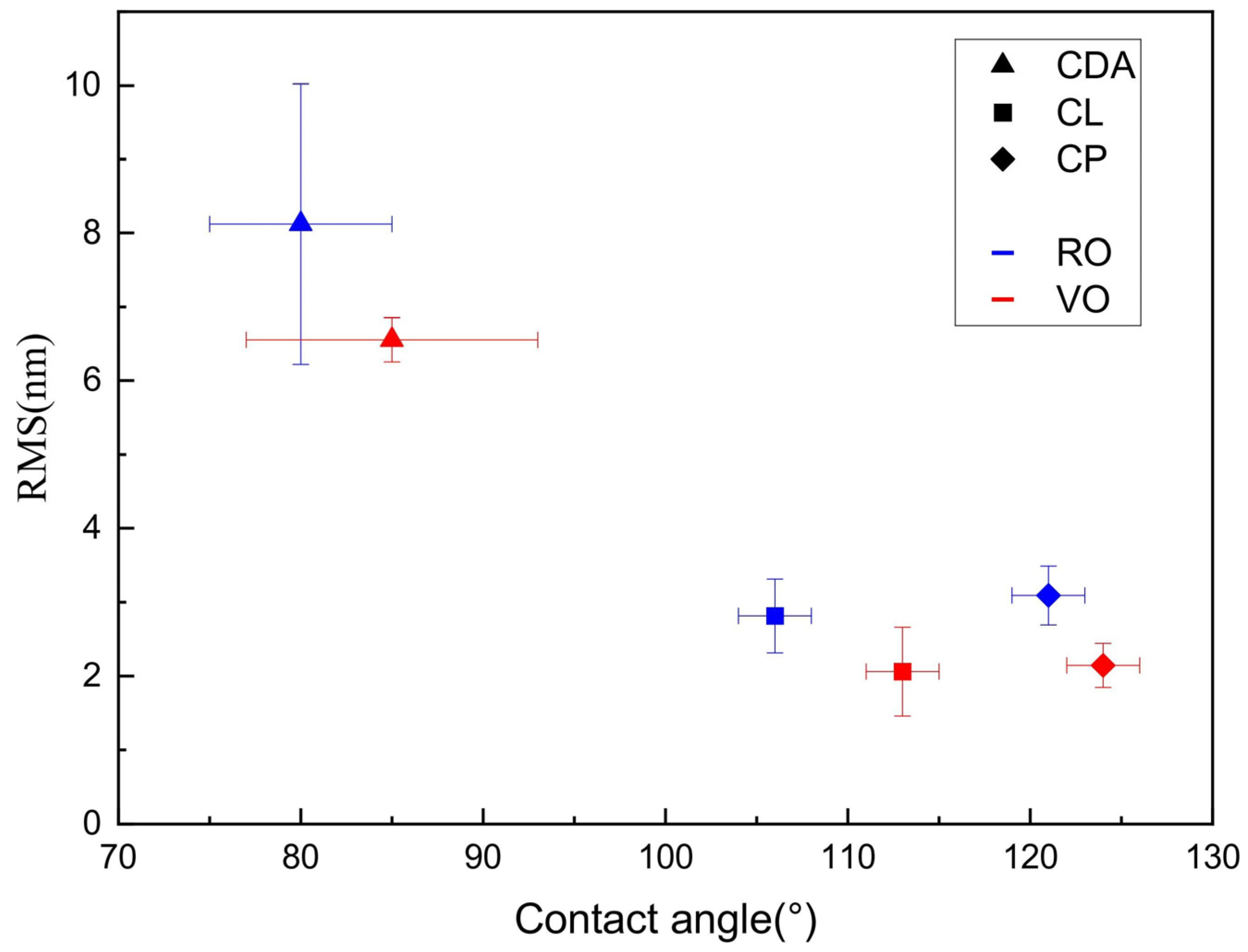 3.6. Correlation of Cellulose Ester Films’ Surface Properties