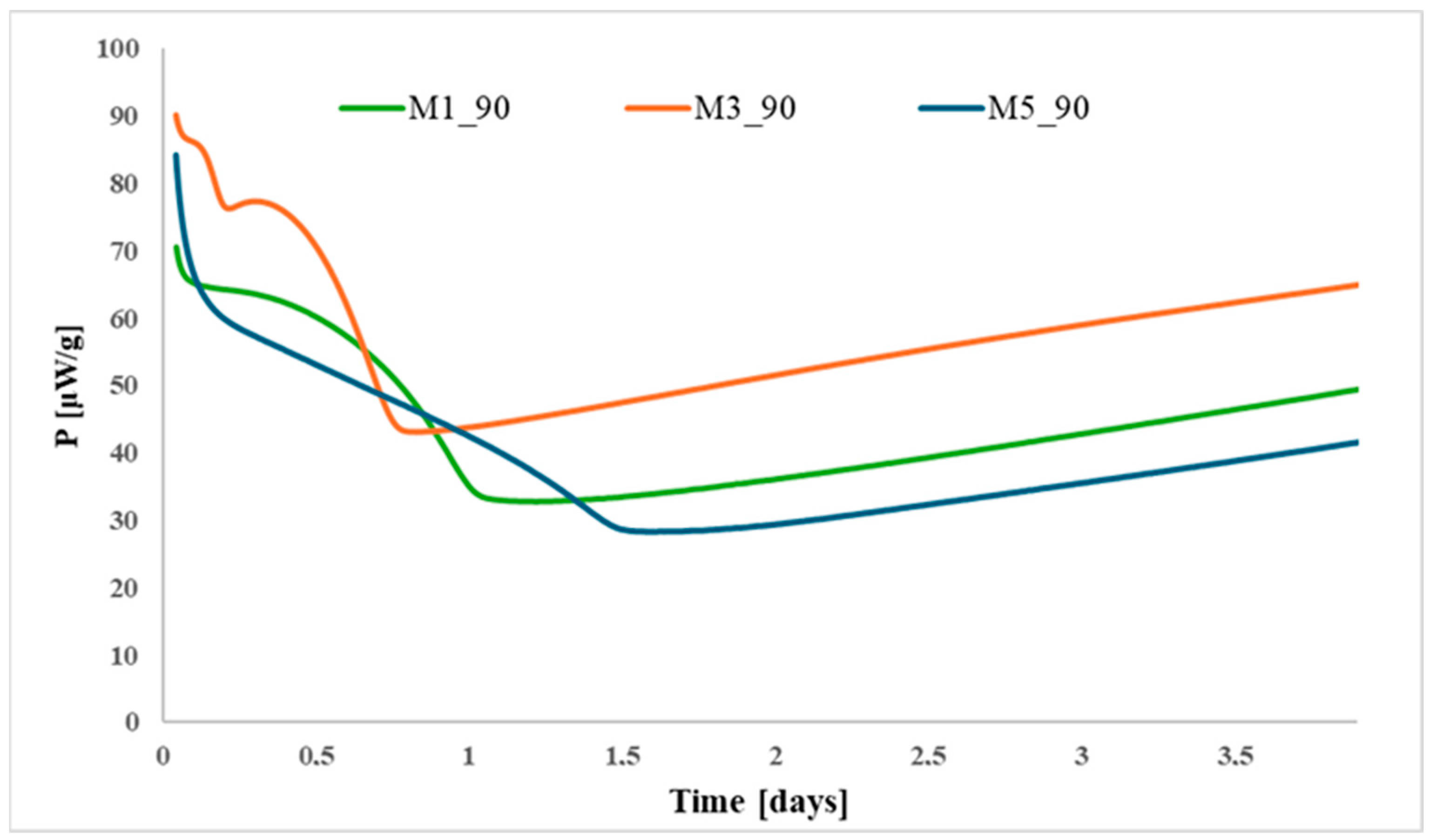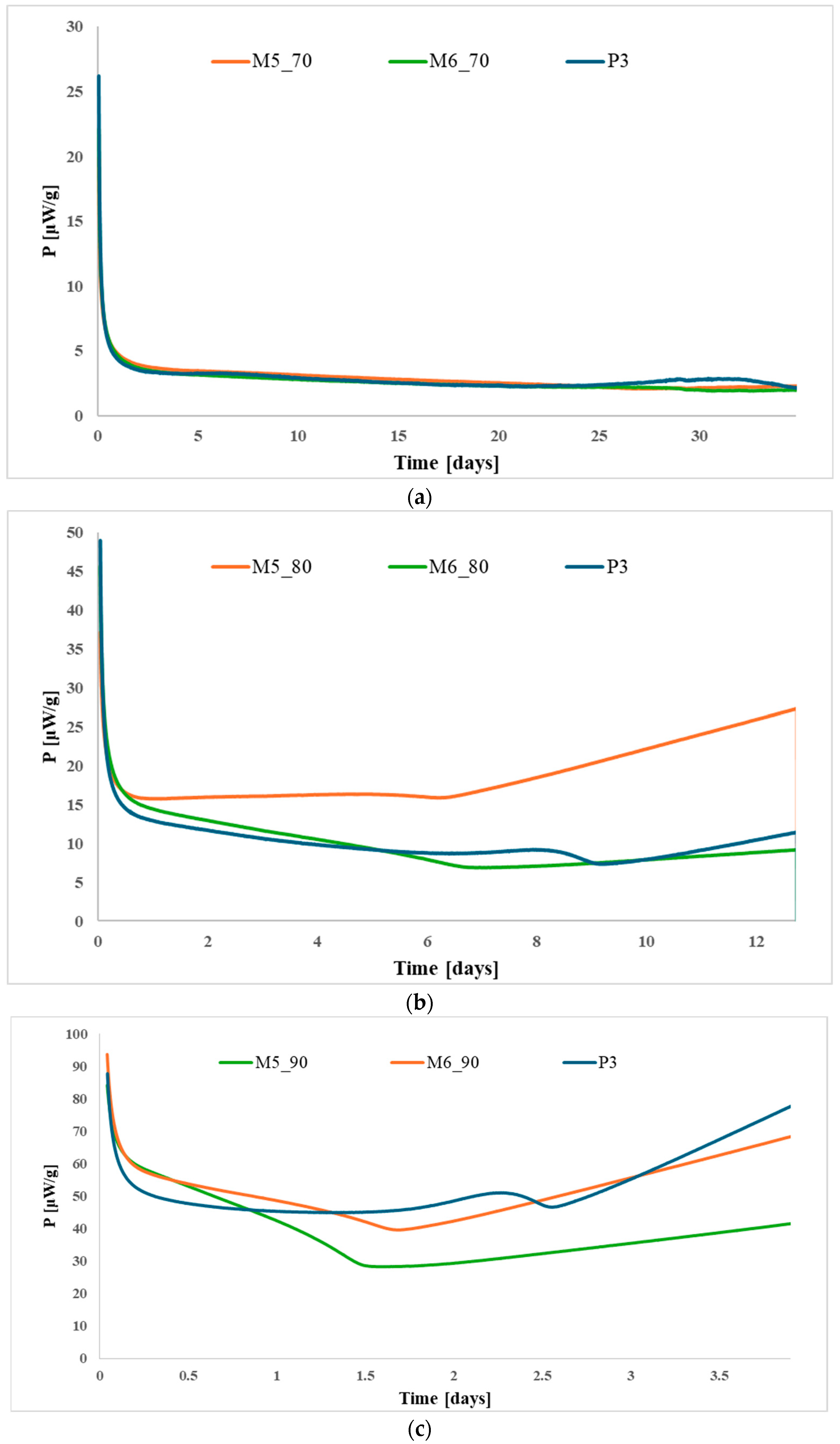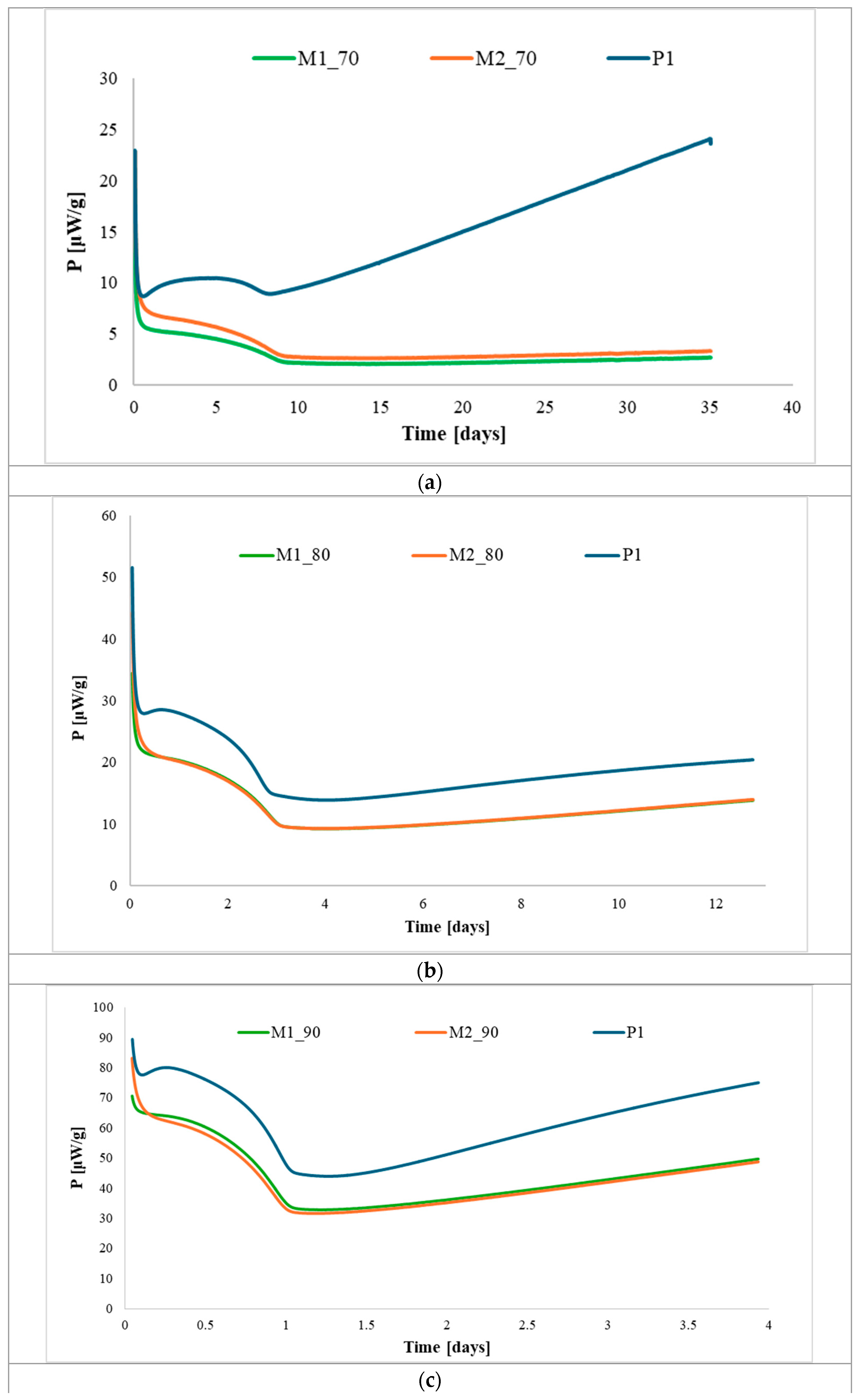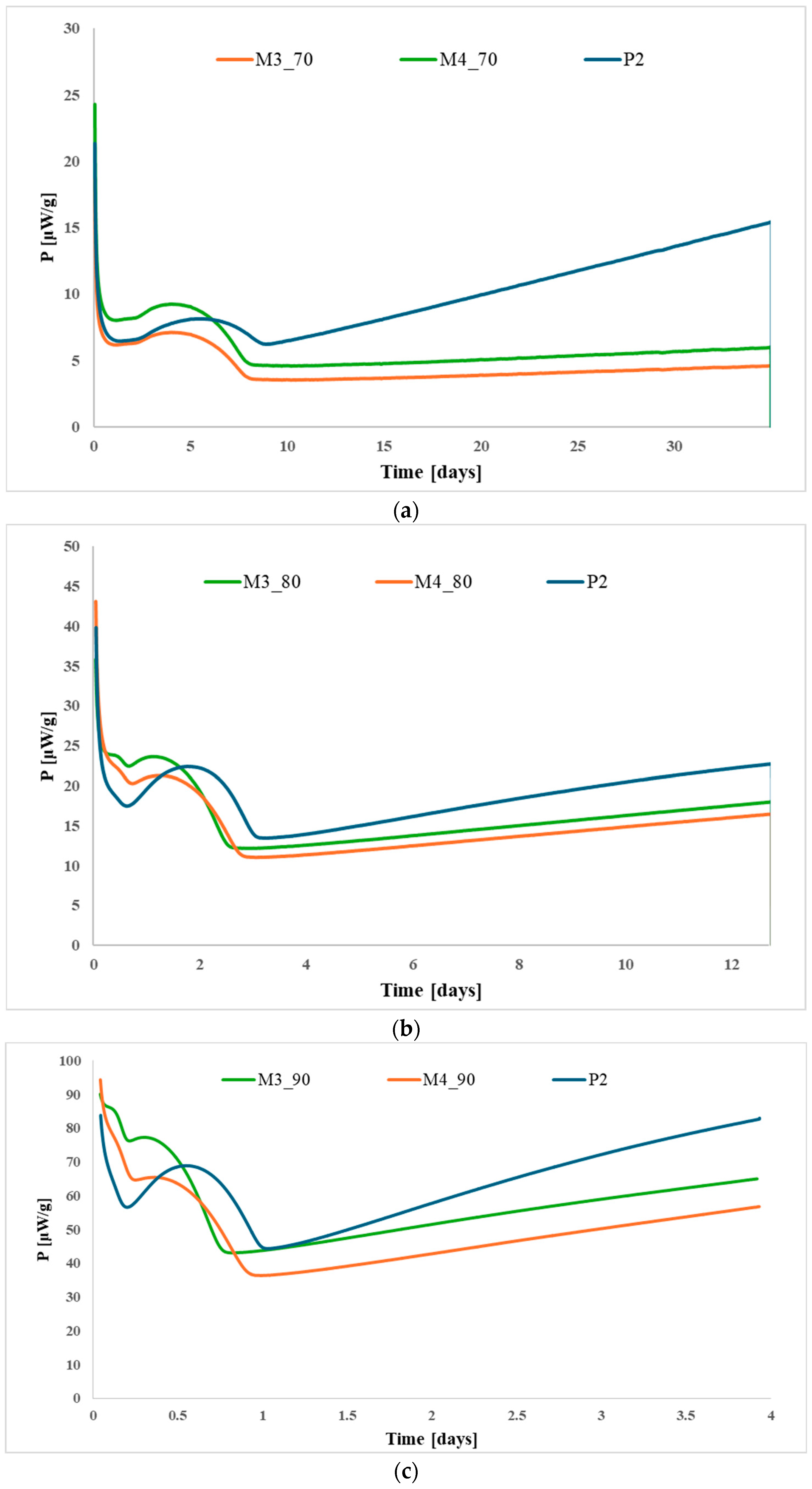 | Temperature [°C] | Aging Time [Days] | Maximum Heat Flow [μW/g] |