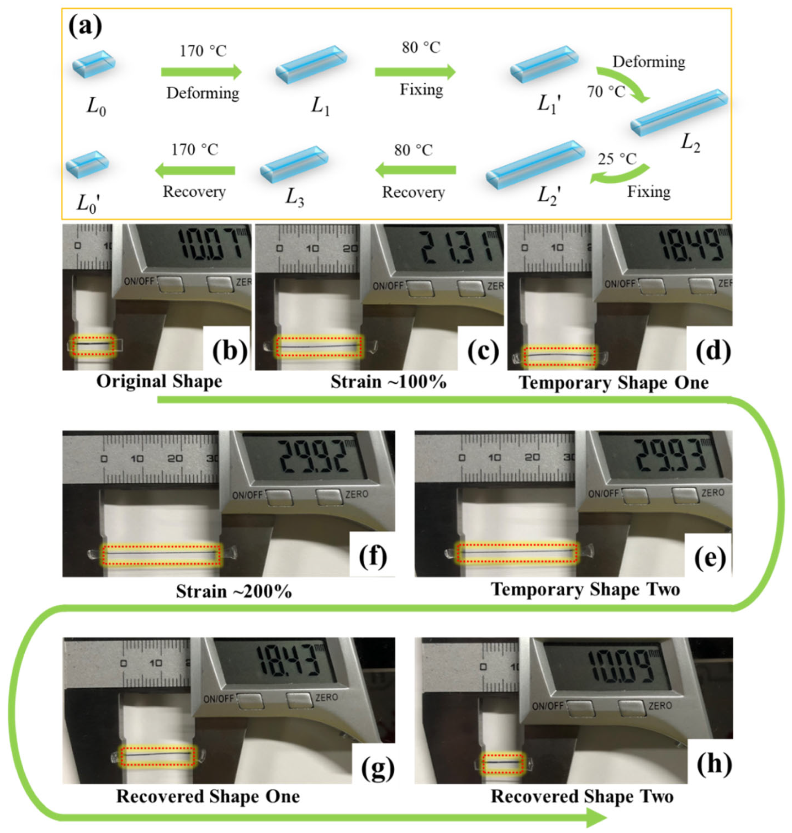 - Zhao, J.X.; Li, J.Y.; Li, Y.J.; You, J.C. Thermoplastic Shape Memory Composites with Enhanced Recovery Stress and Recovery Ratio Based on Double Roles of PVAc-g-GO. Compos. Commun. 2019, 13, 52–56. [Google Scholar] [CrossRef]