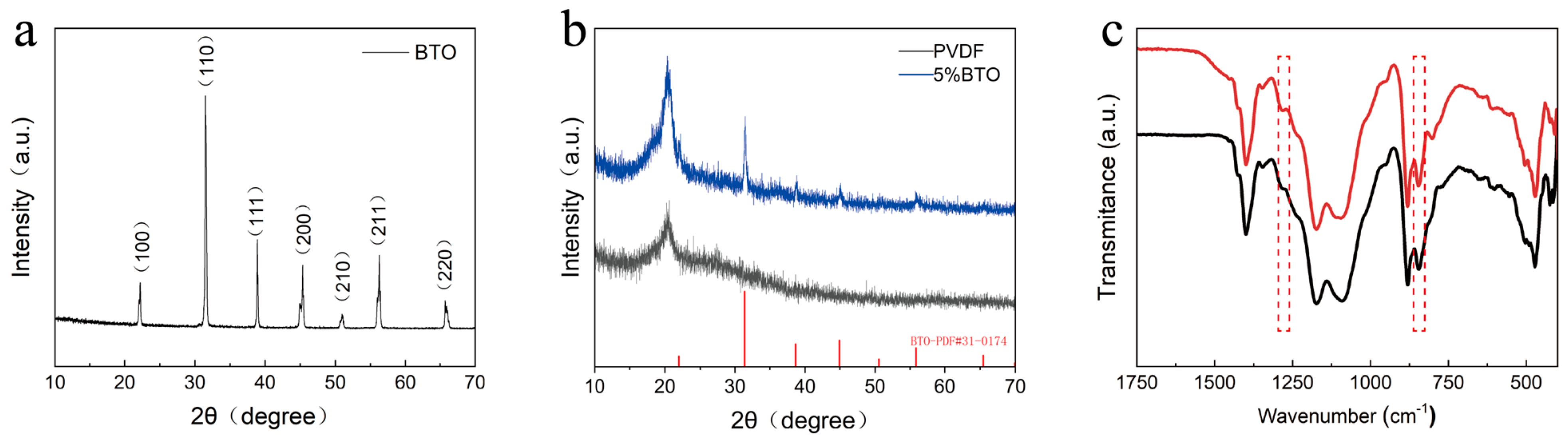 - Kumar, M.; Kulkarni, N.D.; Kumari, P. Fabrication and characterization of PVDF/BaTiO3 nanocomposite for energy harvesting application. Mater. Today Proc. 2022, 56 Pt 3, 1151–1155. [Google Scholar] [CrossRef]