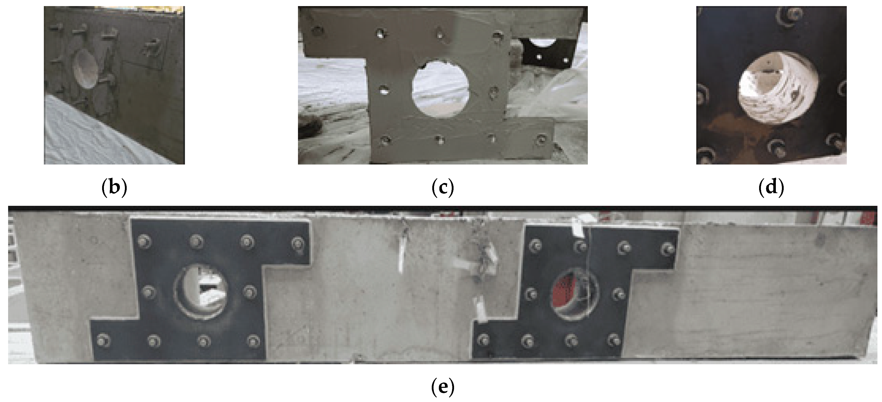 - Abbas, H.; Al-Mahbashi, M.; Elsanadedy, H.; Abadel, A.; Almusallam, T.; Al-Salloum, Y. Strengthening of high-strength RC continuous deep beams having rectangular web openings using bolted steel plates. Eng. Struct. 2025, 337, 120519. [Google Scholar] [CrossRef]