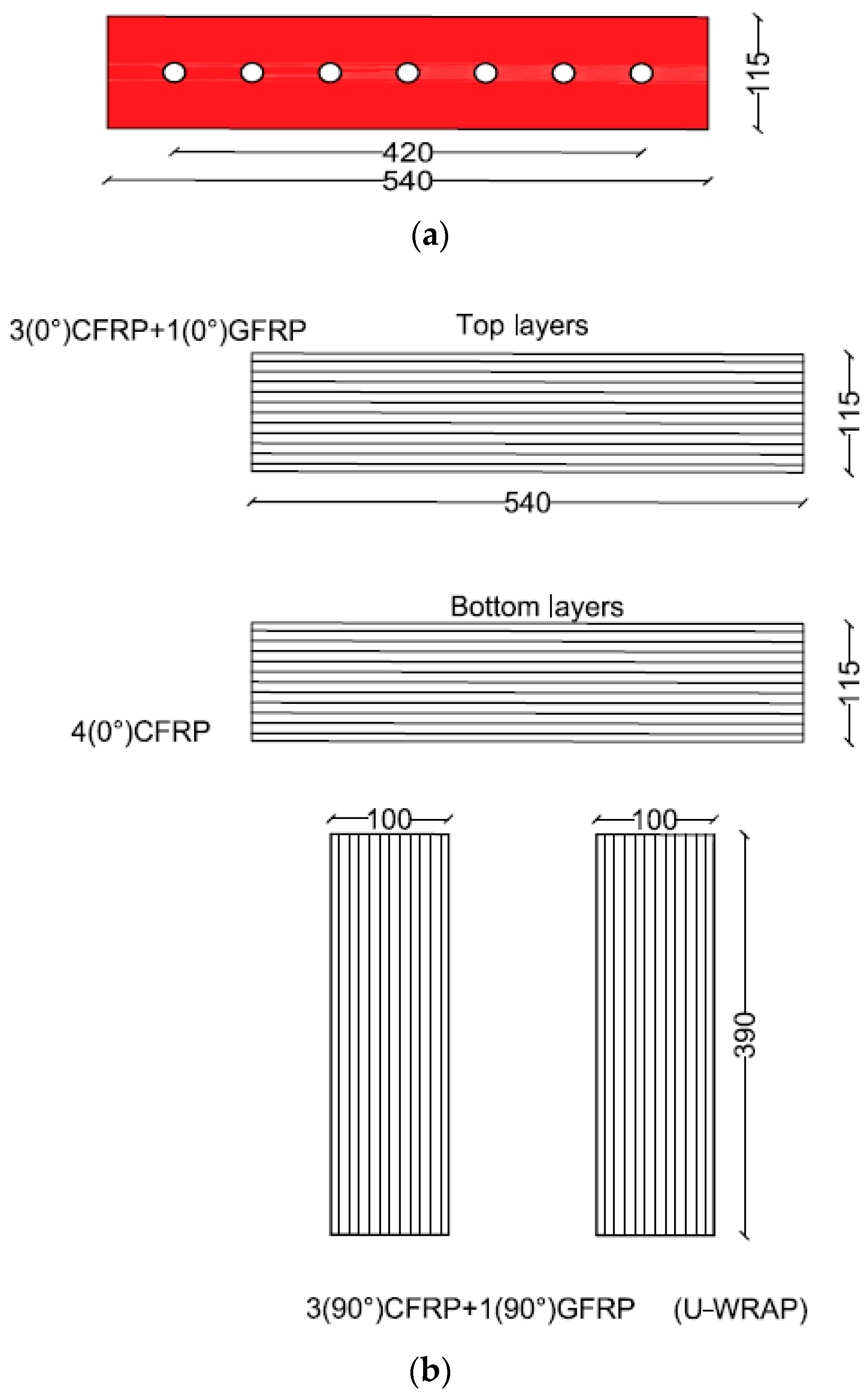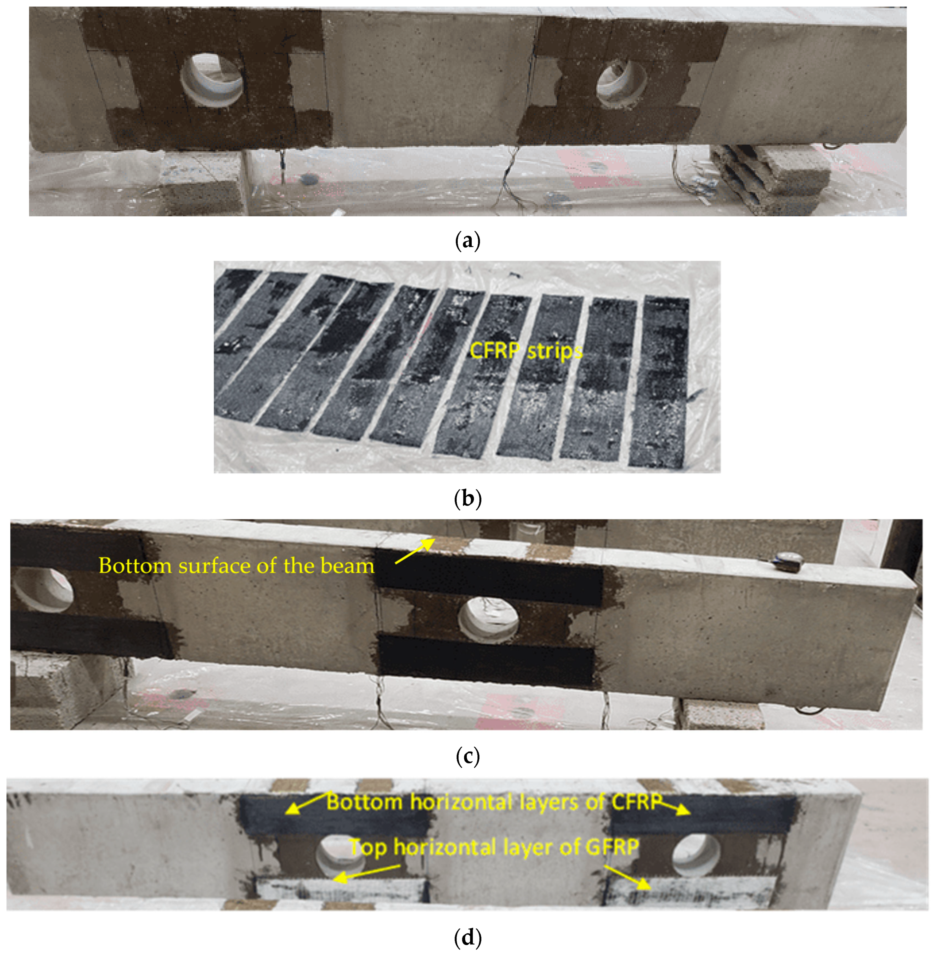 - Rahim, N.I.; Mohammed, B.S.; Al-Fakih, A.; Wahab, M.M.A.; Liew, M.S.; Anwar, A.; Amran, Y.M. Strengthening the structural behavior of web openings in RC deep beam using CFRP. Materials 2020, 13, 2804. [Google Scholar] [CrossRef] [PubMed]