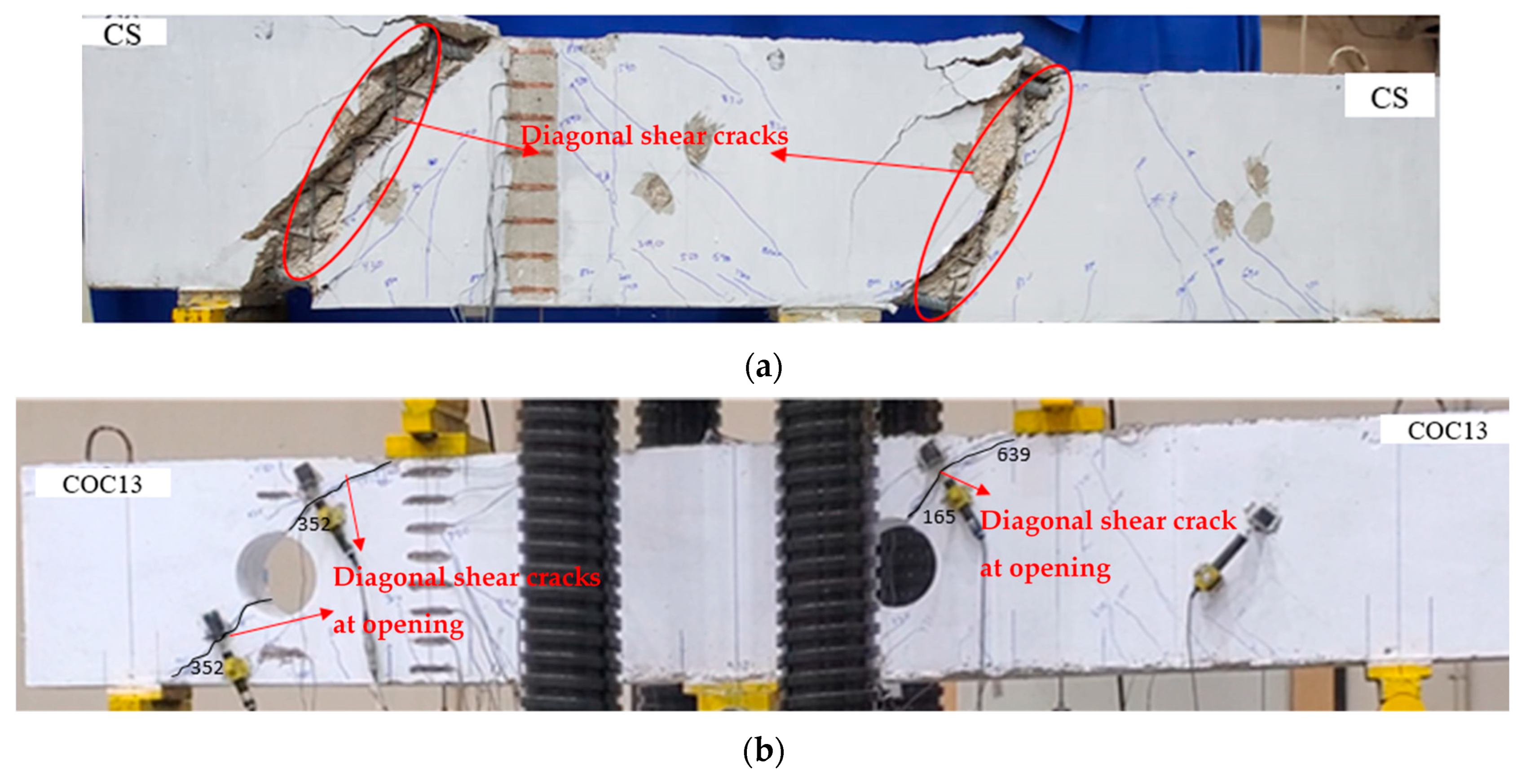 - Allawi, A.A.; Oukaili, N.K.; Jasim, W.A. Strength compensation of deep beams with large web openings using carbon fiber–reinforced polymer sheets. Adv. Struct. Eng. 2021, 24, 165–182. [Google Scholar] [CrossRef]
