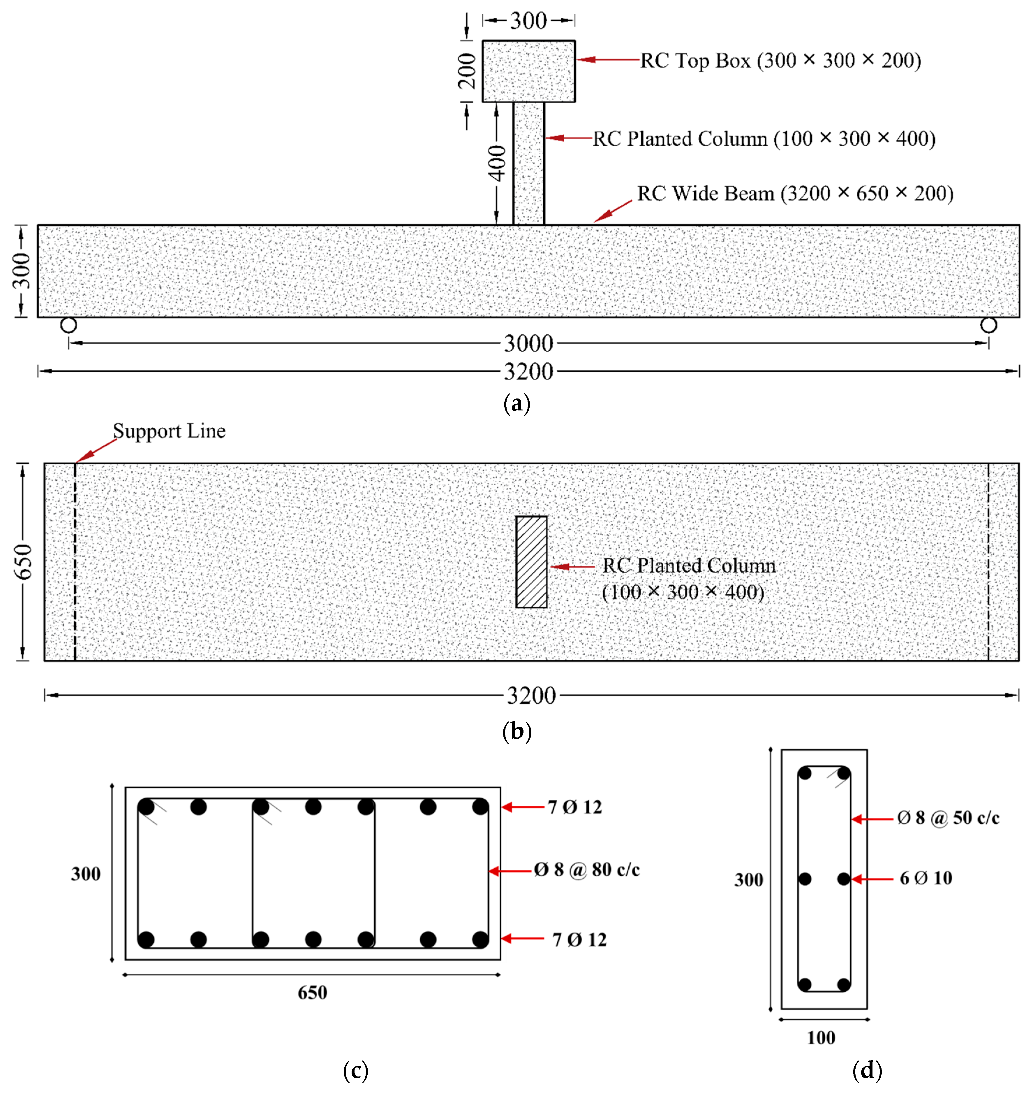 Shallow beams are particularly advantageous when there are limitations on structural depth. However, architectural considerations frequently require the placement of planted columns on such shallow beams. The planted columns transfer loads from upper floors to the shallow beams, which subsequently distribute them to the supporting columns [3]. The practice of constructing shallow beams with planted columns is common in Saudi Arabia, prompting a closer investigation into the structural behavior of these configurations.