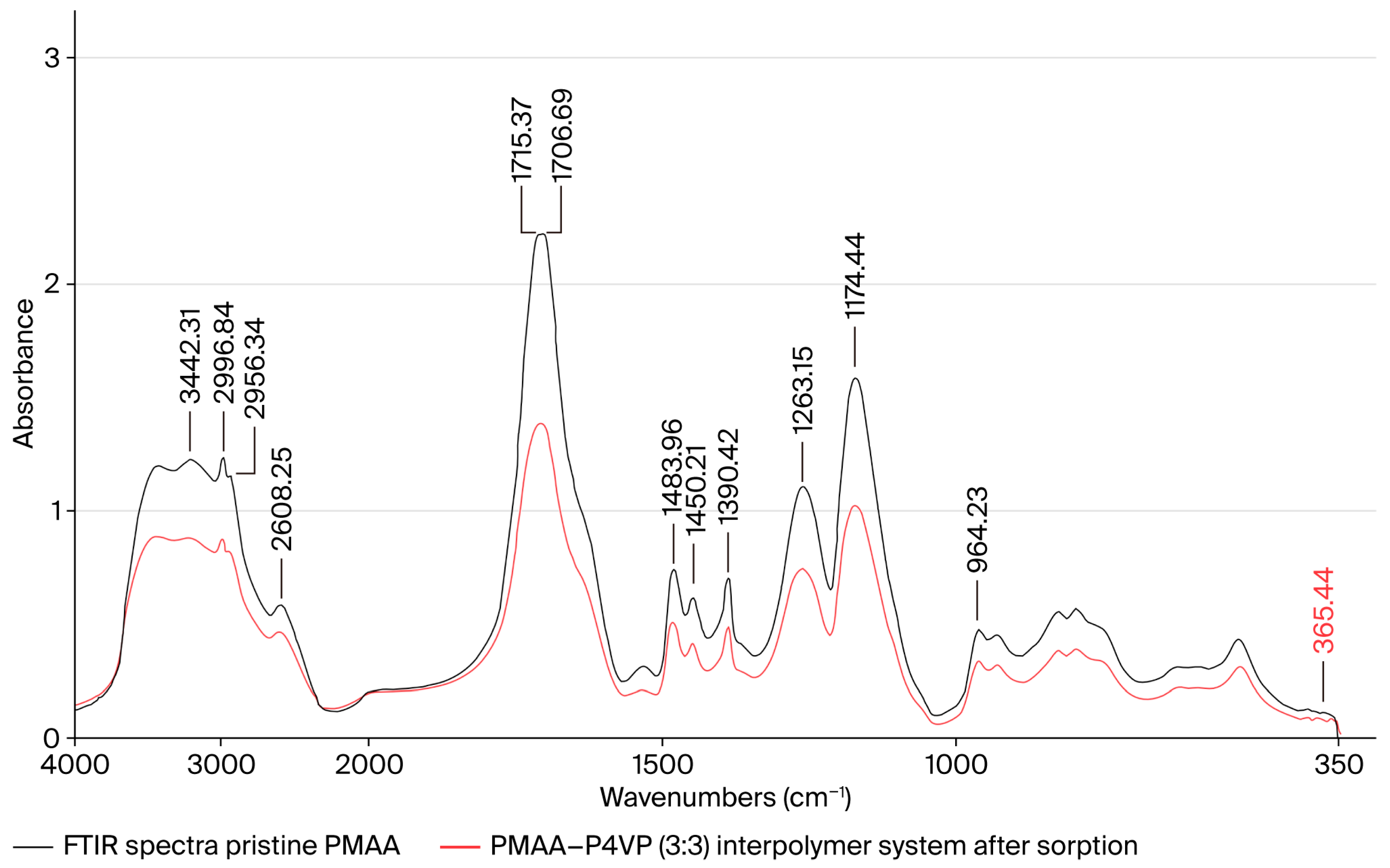 Table 3. FTIR band positions of PMAA–P4VP before and after sorption of Re(VII) and Mo(VI) (resolution ± 2 cm−1).