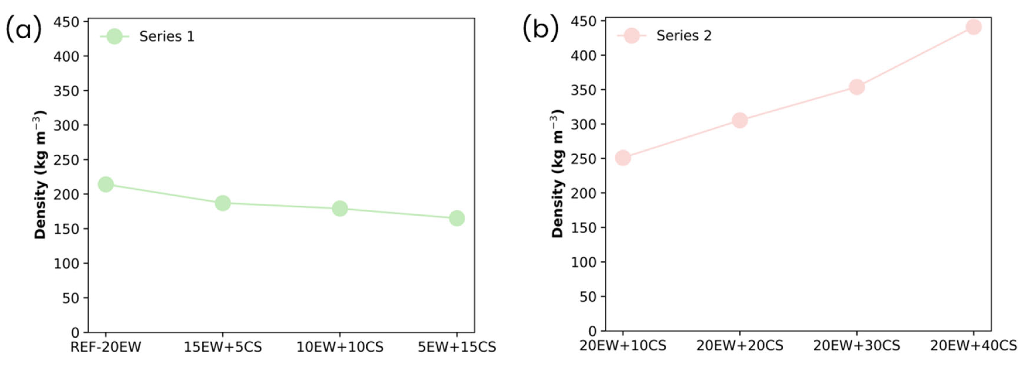 - ASTM D1622-08; Standard Test Method for Apparent Density of Rigid Cellular Plastics. ASTM: West Conshohocken, PA, USA, 2008. Available online: https://store.astm.org/d1622-08.html (accessed on 12 November 2025).