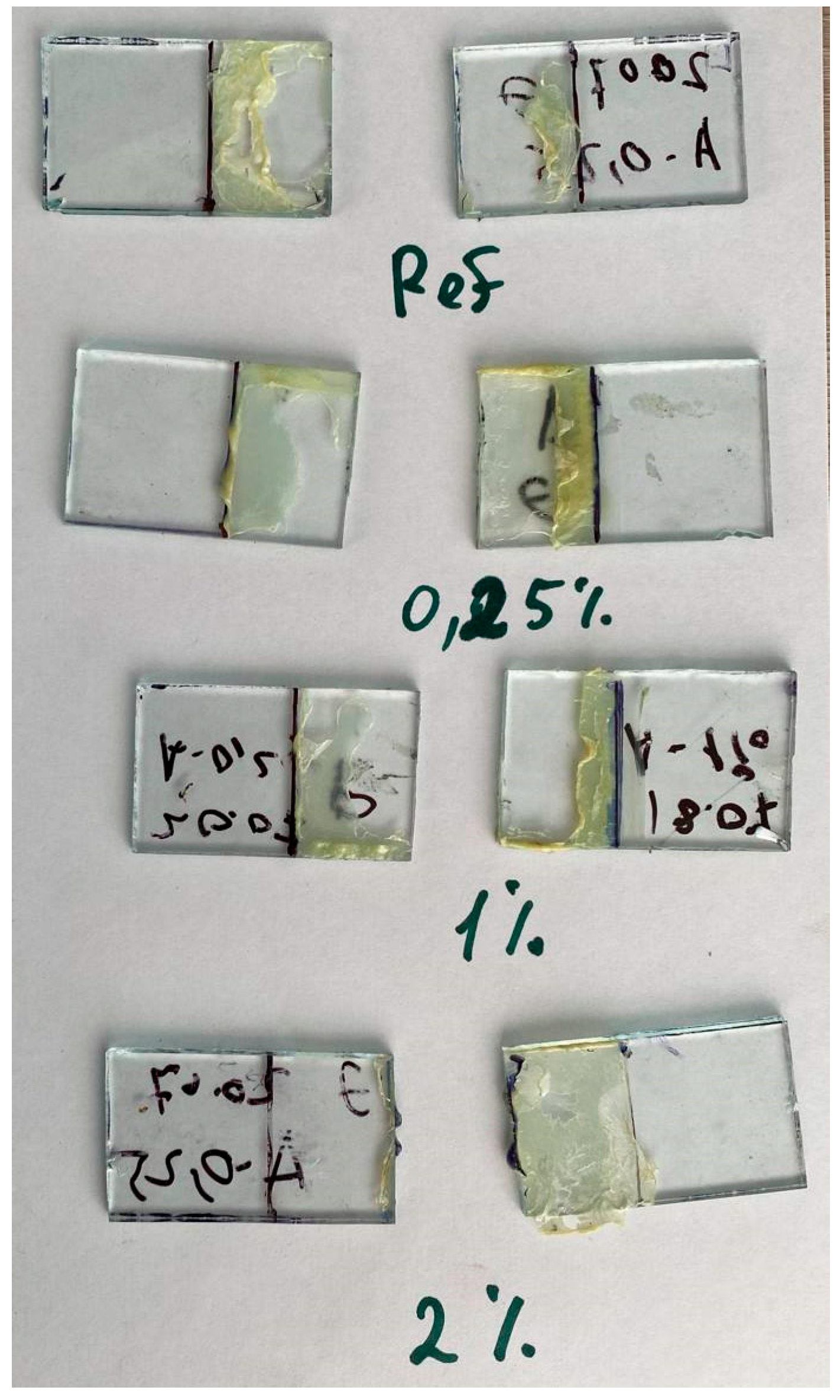 - ISO 4587:2003; Adhesives—Determination of Tensile Lap-Shear Strength of Rigid-to-Rigid Bonded Assemblies. International Organization for Standardization: Geneva, Switzerland, 2003.