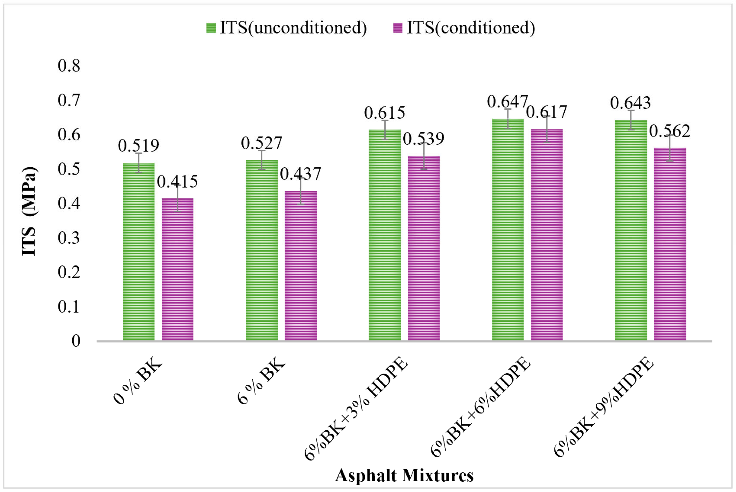 3.1. Indirect Tensile Strength (ITS) Results