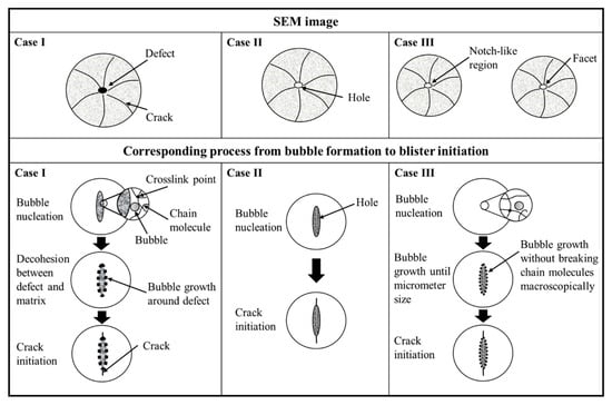 Schematic diagram of the process from bubble formation to blister initiation [60].