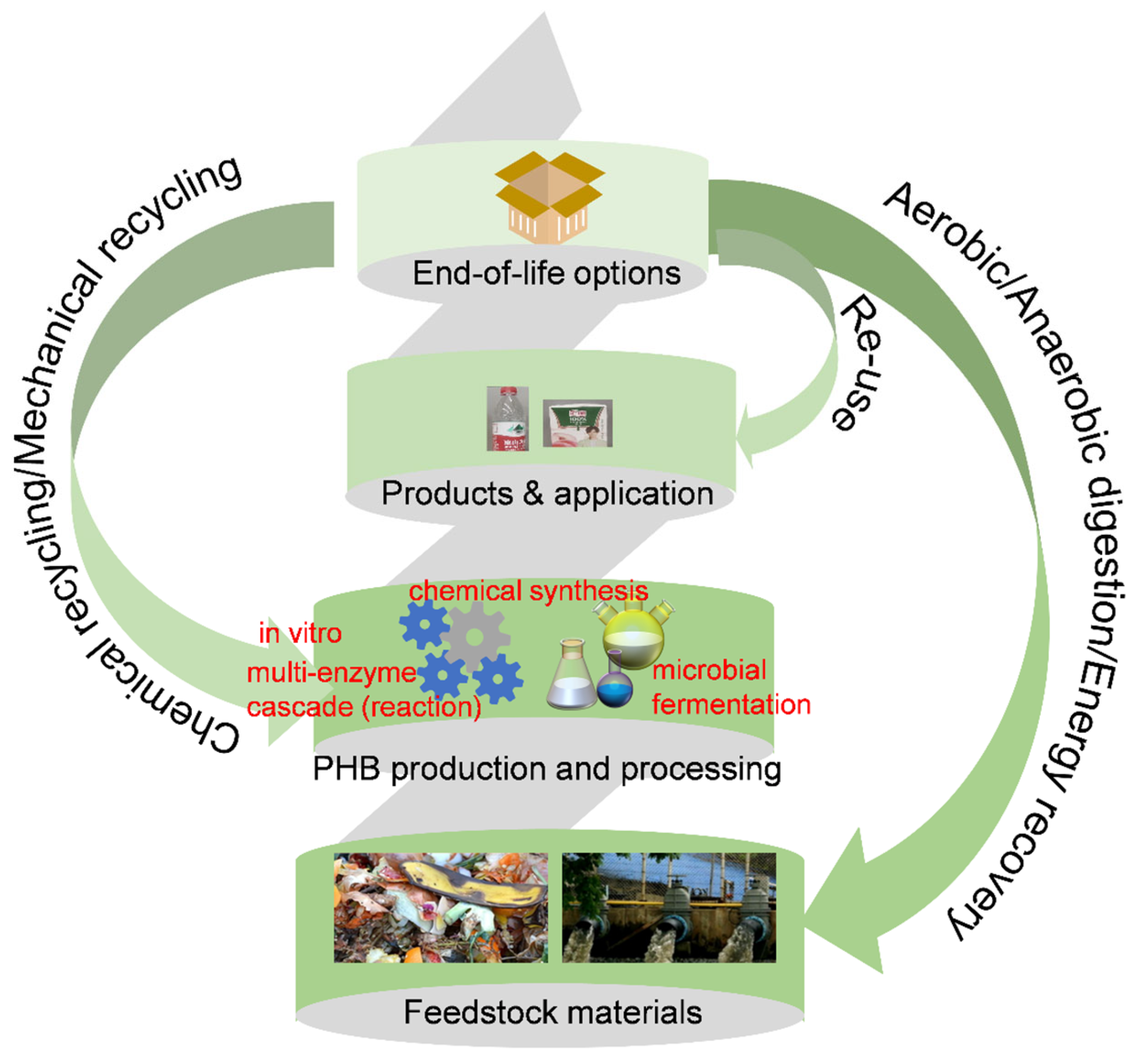 - Wang, J.F.; Huang, J.Q.; Liu, S.J. The production, recovery, and valorization of polyhydroxybutyrate (PHB) based on circular bioeconomy. Biotechnol. Adv. 2024, 72, 108340. [Google Scholar] [CrossRef] [PubMed]
