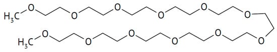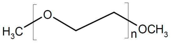 There is also evidence that effects may depend on the particle size, with small particles increasing conductivity only and larger ones increasing the conductivity and transport number []. This applies to all added particular materials. In a further highly unsystematic study of several inorganic components with different particle sizes and dielectric constants, no coherent conclusions were obtained []. Ion-conducting materials may add further ionic conduction pathways inside the particles. Possibilities of enhanced ionic conductivity mechanisms have been reviewed []. Further advantages may be gained by starting from a polymer blend of, e.g., poly(vinylalcohol) PVA (Figure 3) and PEO (Figure 4). Beneficial effects were also observed upon the addition of BaTiO3 as a filler to a polymer blend of PVA and poly(ethylene glycol) PEG (Figure 5), of Li0.5La0.5TiO3 to a blend of PEO and polyvinylidene fluoride (PVDF, see Figure 6), or of ZrO2 to poly(vinylidene fluoride-co-hexafluoropropylene) (PVDF-HFP, see Figure 6). Actual modes of operation of the added ceramic may differ from material to material depending on the exact chemical composition. The case of PEO with inorganic fillers has been reviewed in detail []. In addition, attention has been paid to effects of surface modifications of inorganic fillers added to PEO [].