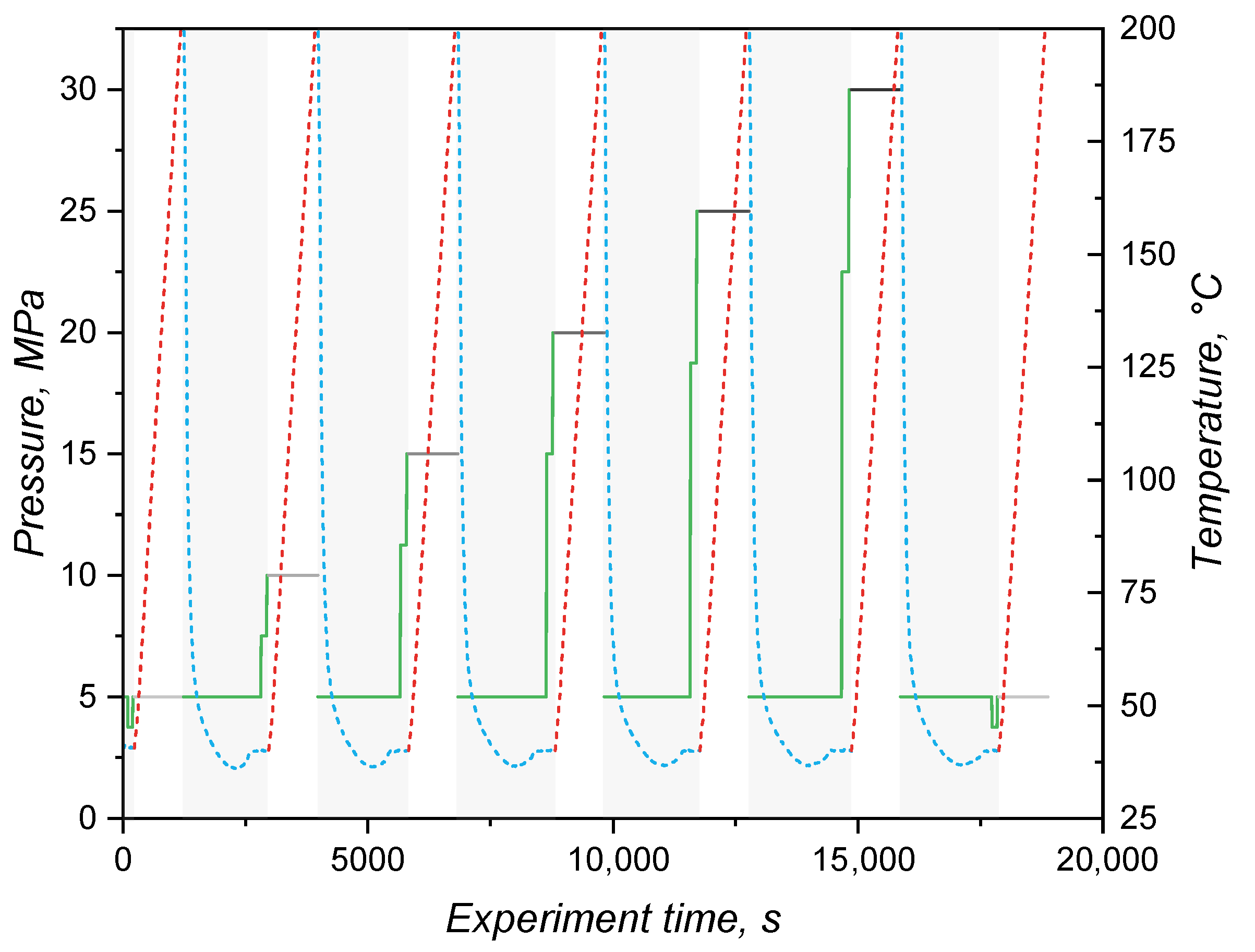 By combining the effect of pressure and temperature, one can realise that thermal expansion is hindered by the pressure increase, as the slope of the plotted lines in