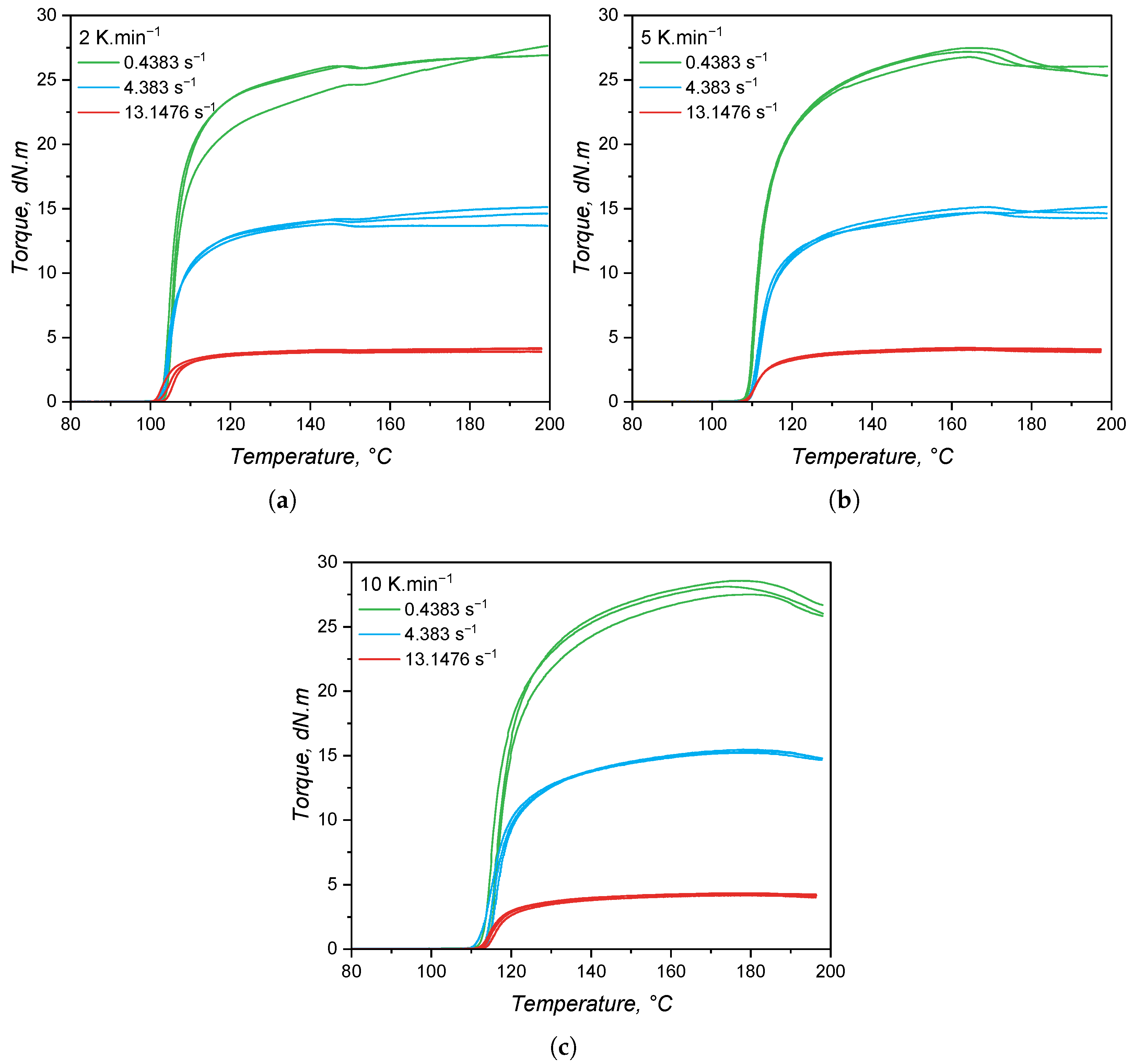 48], who identified a 10% increase in the thermal conductivity for crosslinked rubber compounds when compared to the uncured counterpart. For the present scenario, considering that the samples’ thermal conductivities are dominated by the filler thermal properties and that curing of LSR connects two adjacent macromolecules via a linkage that is oligomeric (the size of the Si–H-based crosslinker), a decrease in