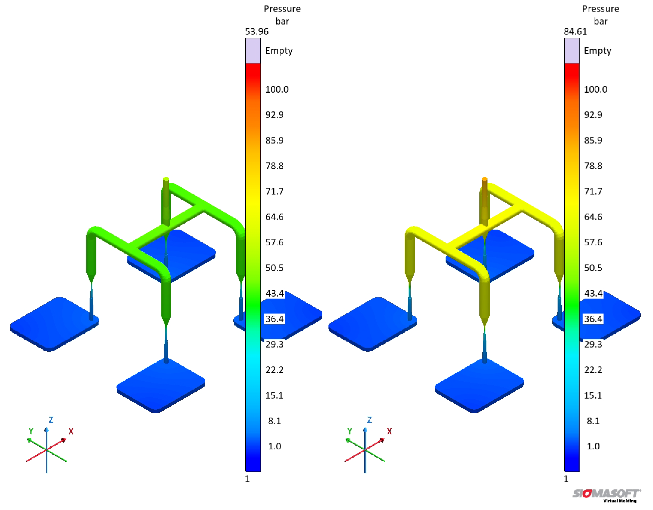 The variation in specific volume with temperature and pressure is peculiarly important for liquid silicone rubber due to the fact that it experiences considerable thermal expansion during processing [