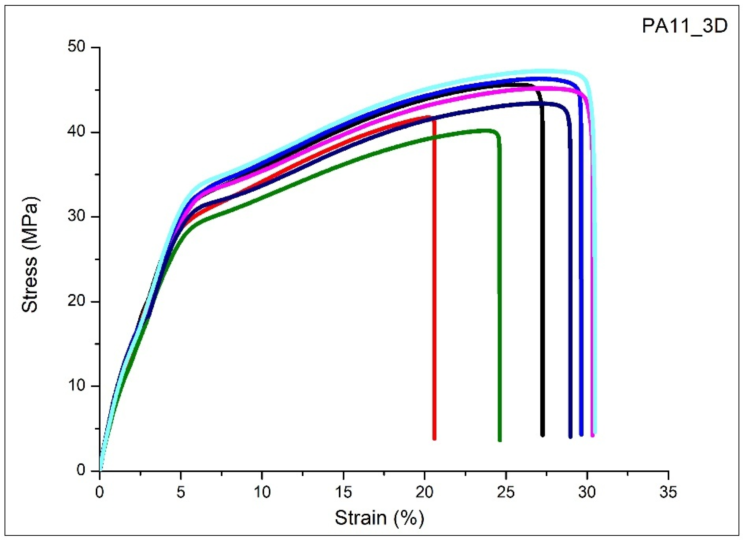 3.6. Tensile Properties of PA11 Printed Parts