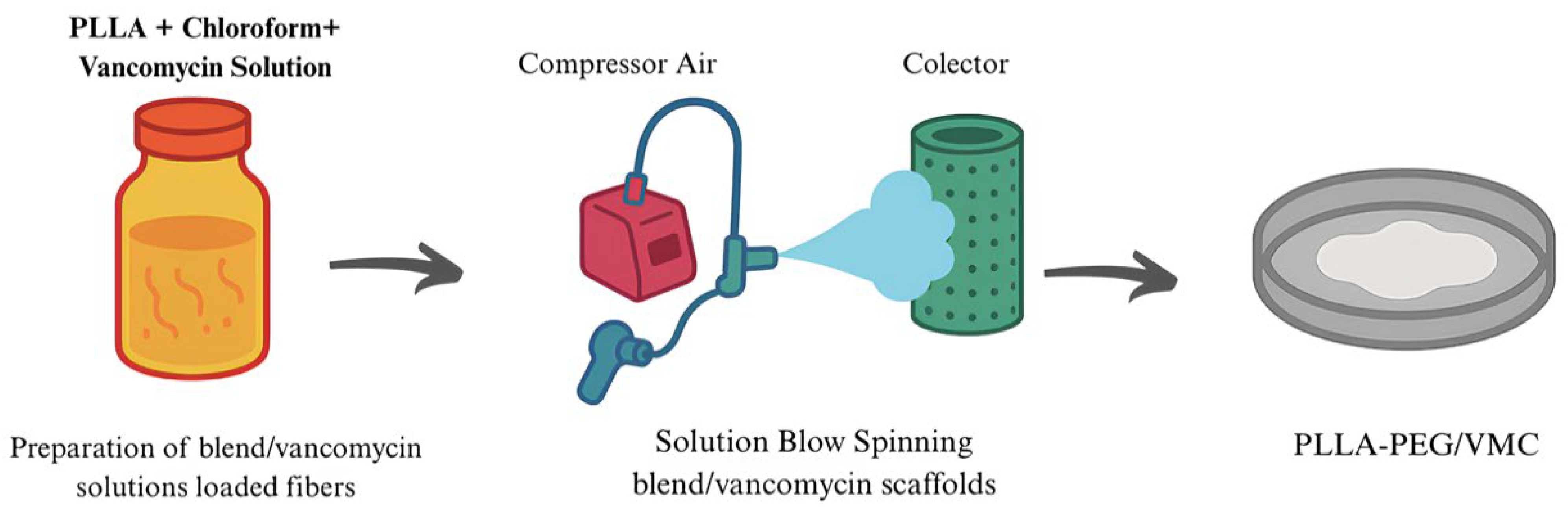 2.2. Preparation of PLLA/PEG and Vancomycin-Loaded Solutions