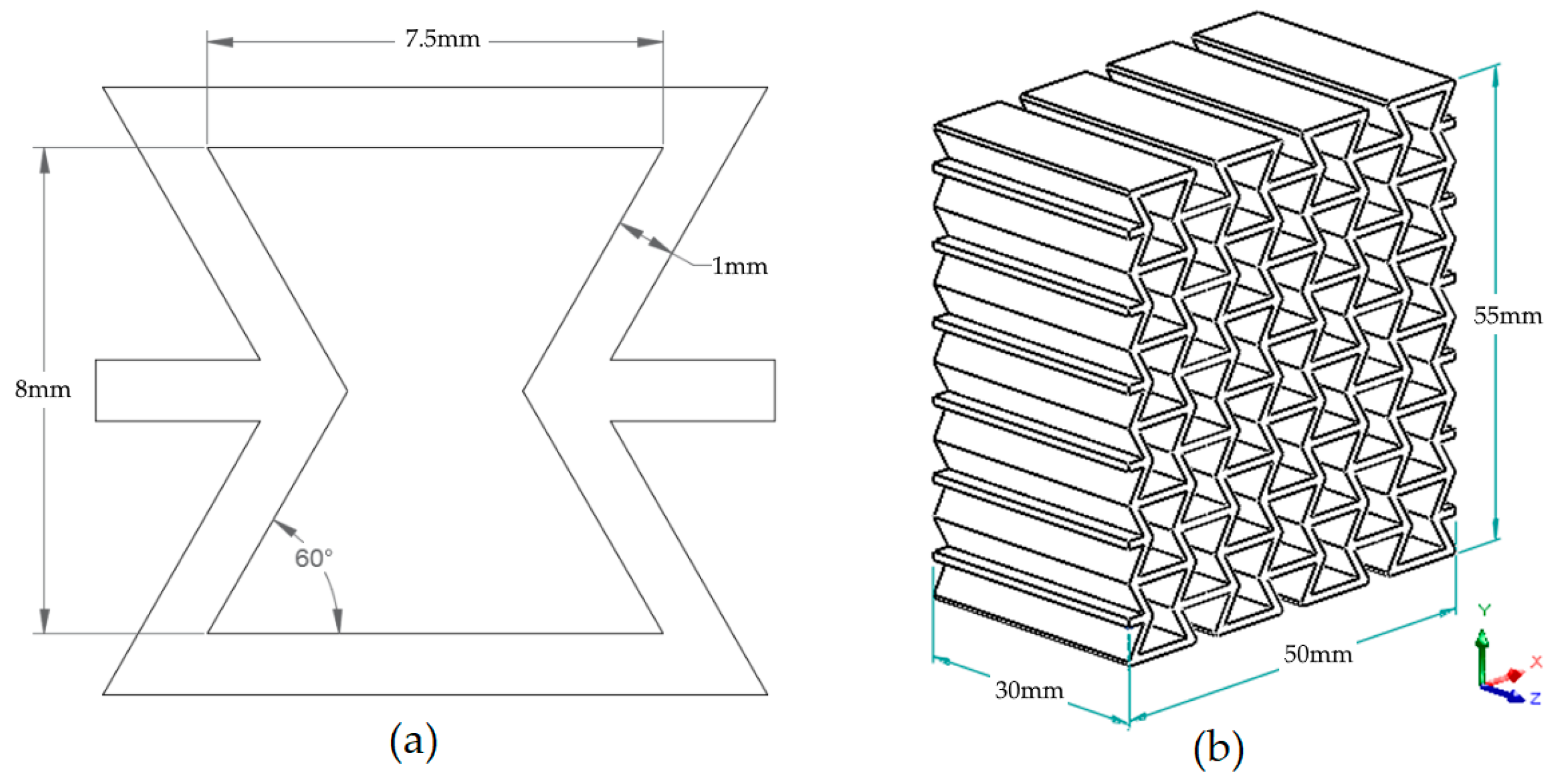 In this study, the re-entrant honeycomb structure was selected as the auxetic model due to its frequent use and proven performance in the literature. The dimensions of a single re-entrant cell, as illustrated in