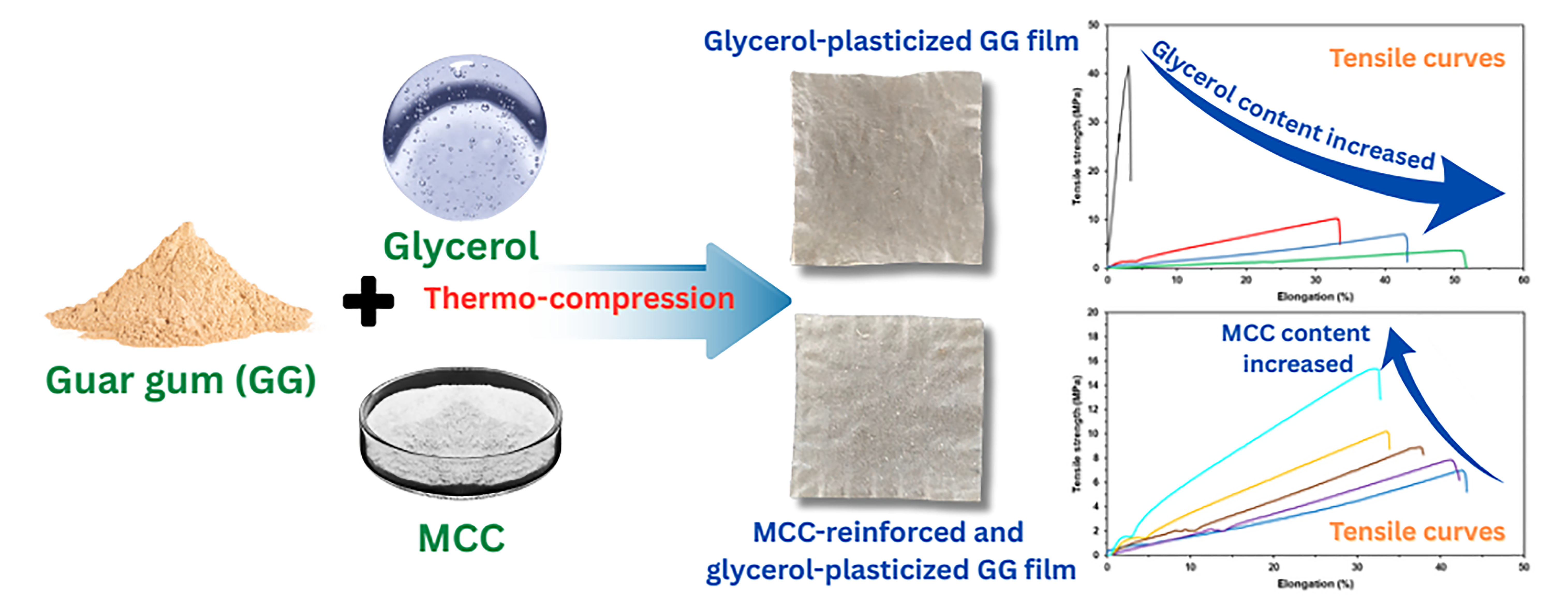 Srihanam, P.; Jirum, J.; Noppawan, P.; Khotsaeng, N.; Baimark, Y. Preparation and Characterization of Thermo-Compressed Guar Gum/Microcrystalline Cellulose Composites for Applications in Sustainable Packaging. Polymers 2025, 17, 3124. https://doi.org/10.3390/polym17233124