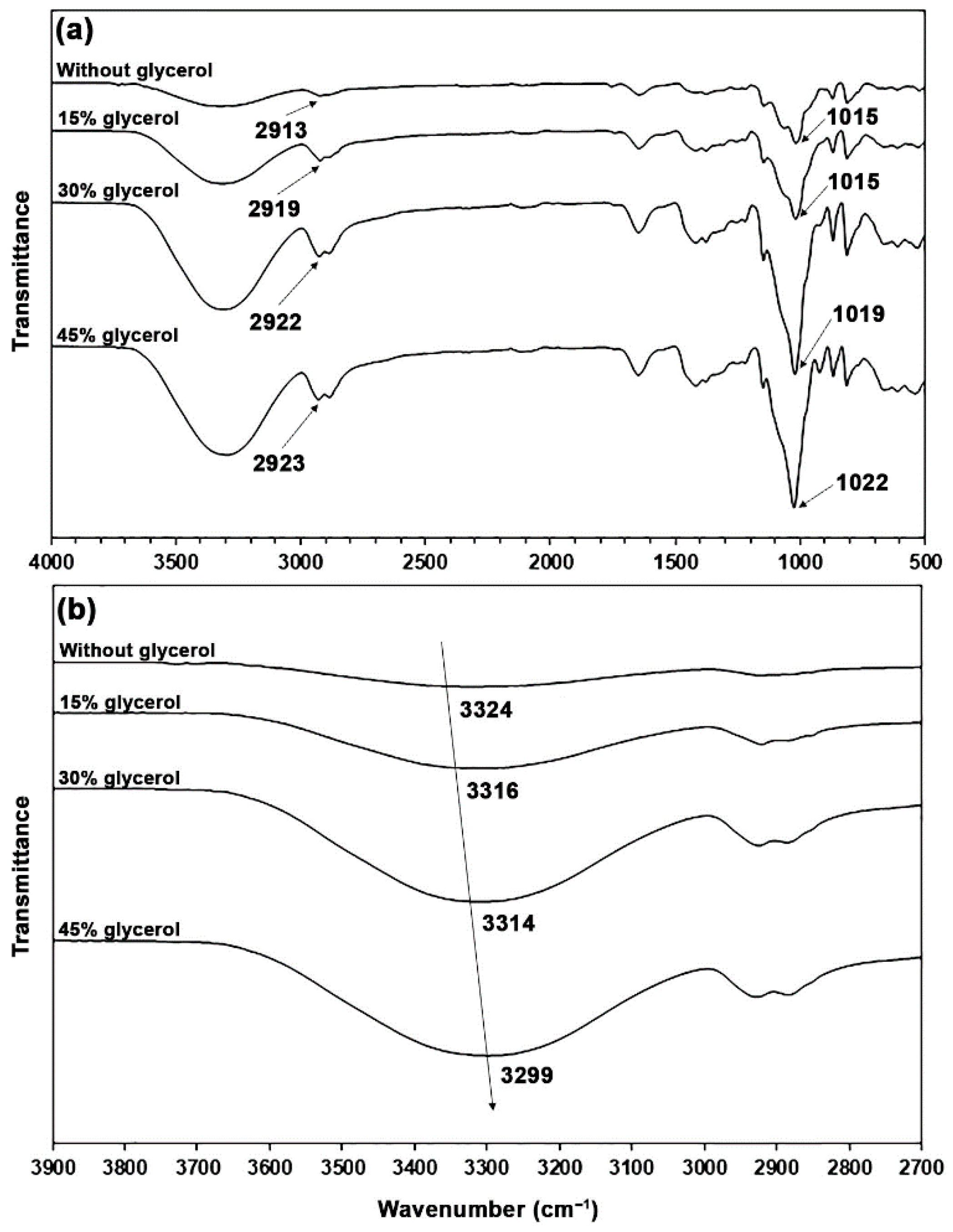 | Sample Code | Glycerol Content (wt%) | Film Thickness (mm) | Moisture Content (%) | Film Opacity (mm−1) |