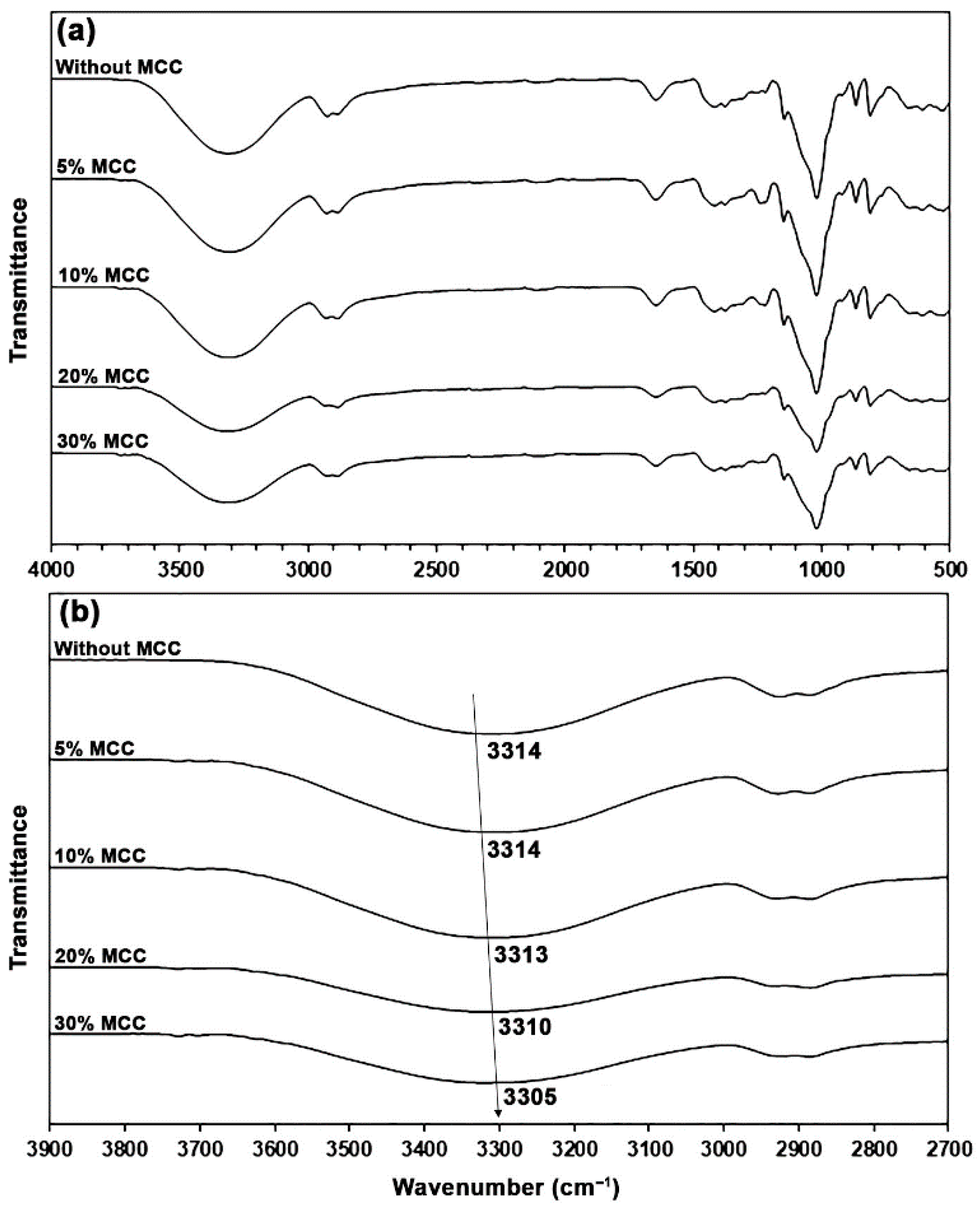 3.2. Effect of MCC on Properties of Plasticized GG Films